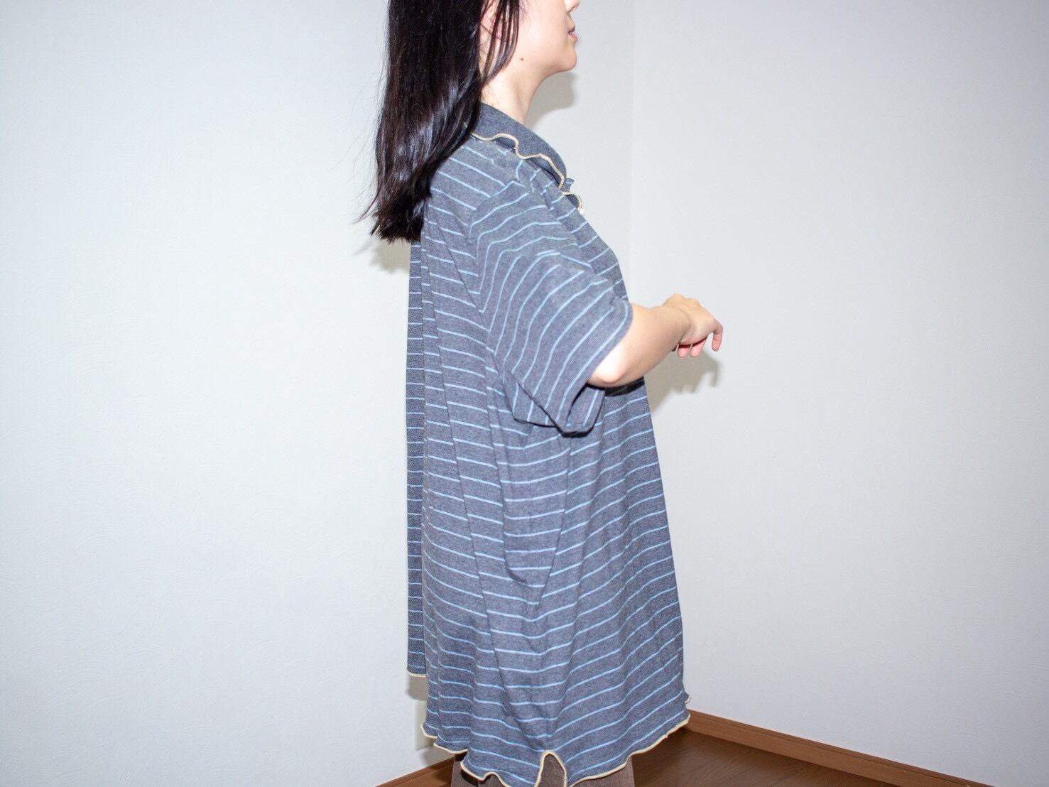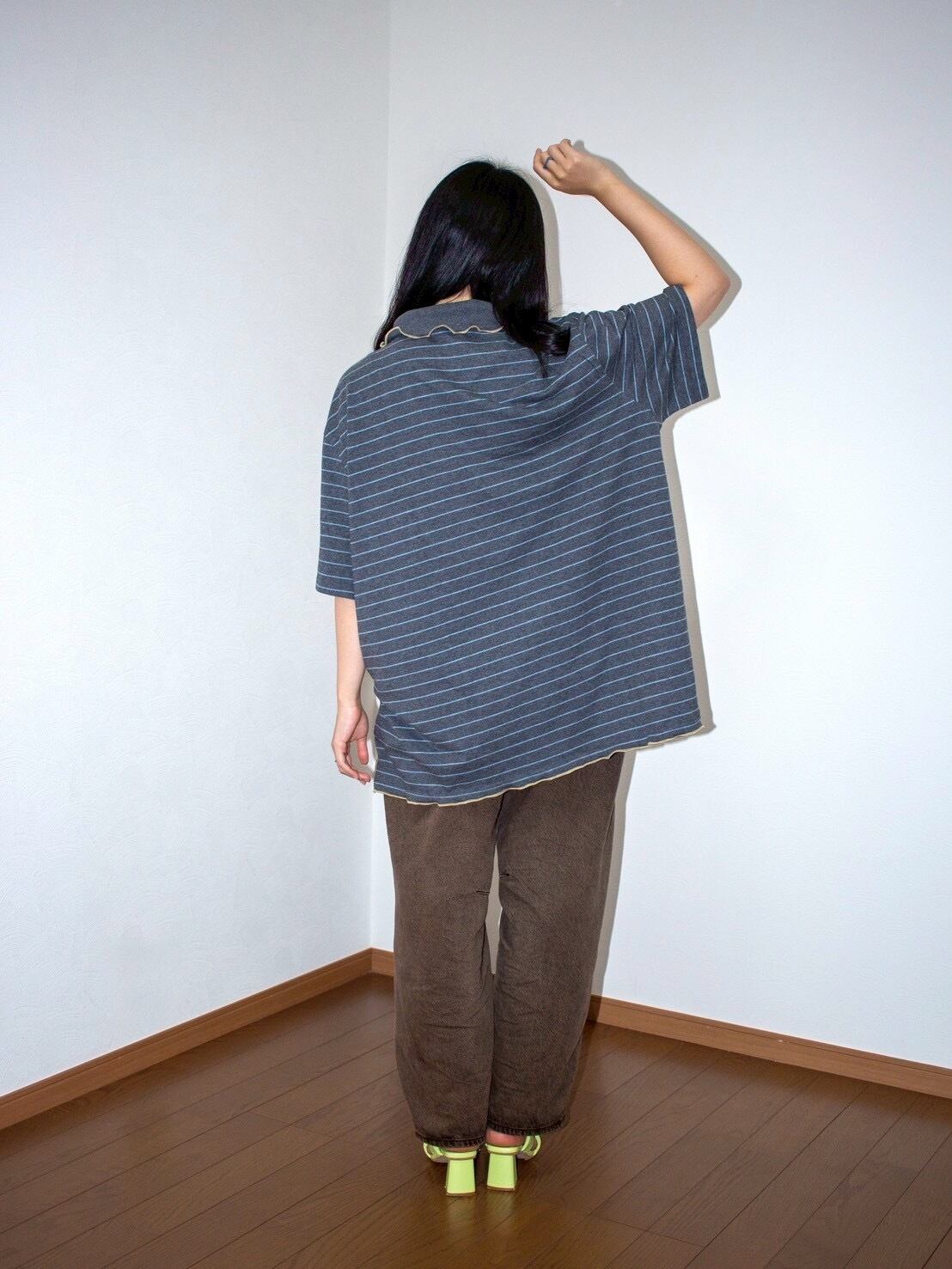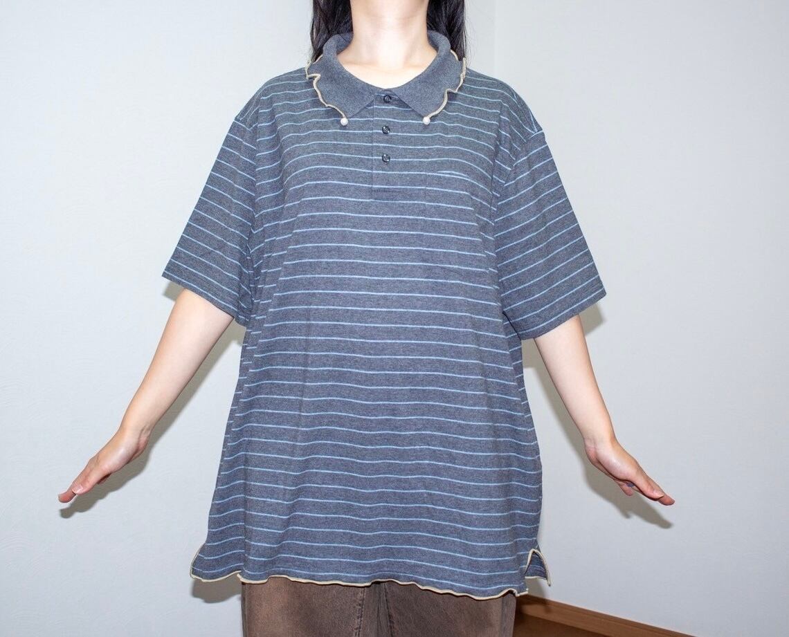襟にパールがついた元BIGポロシャツのチュニックワンピース。