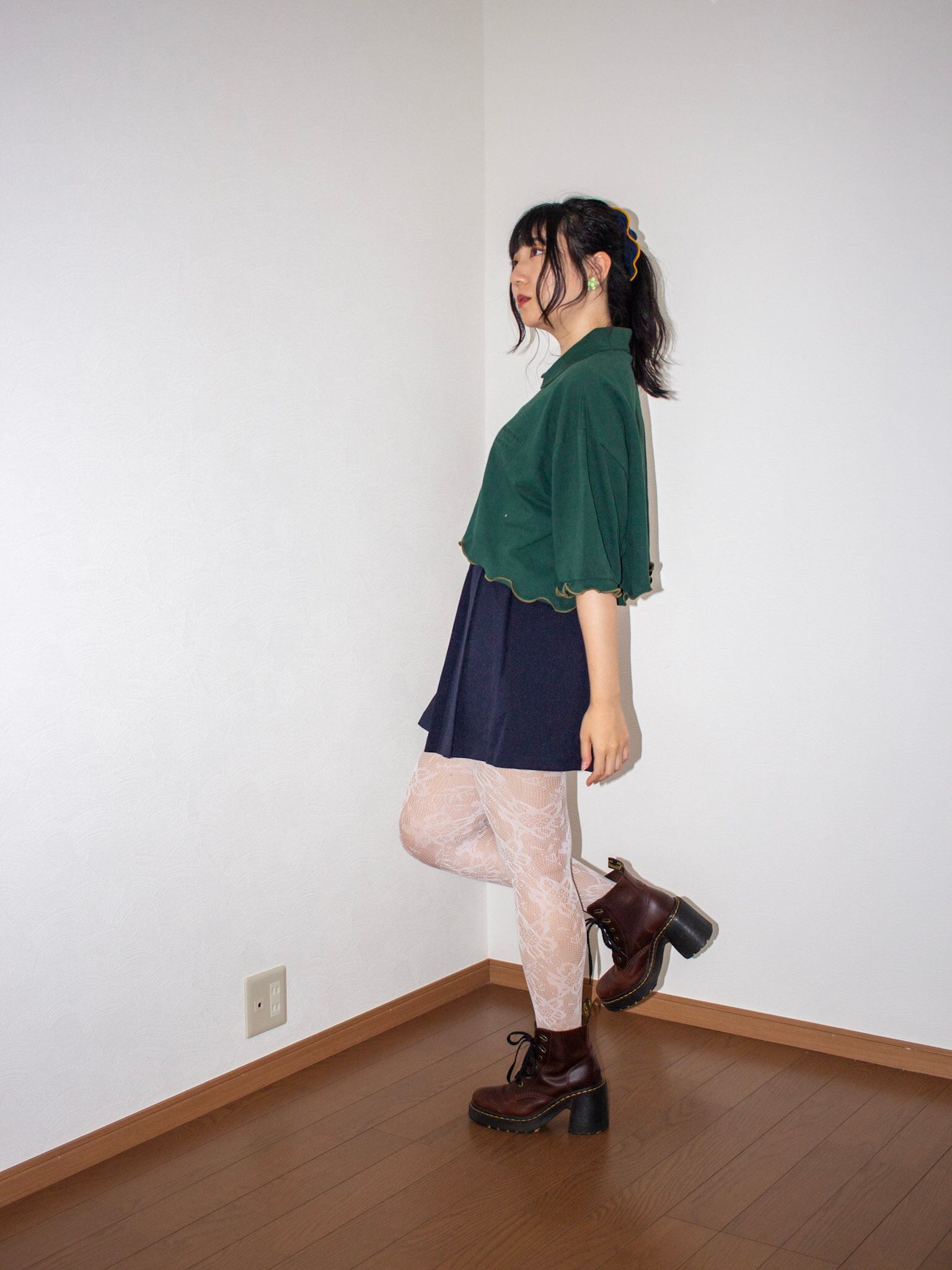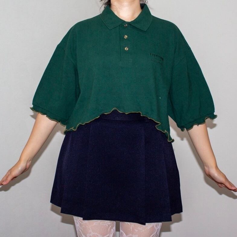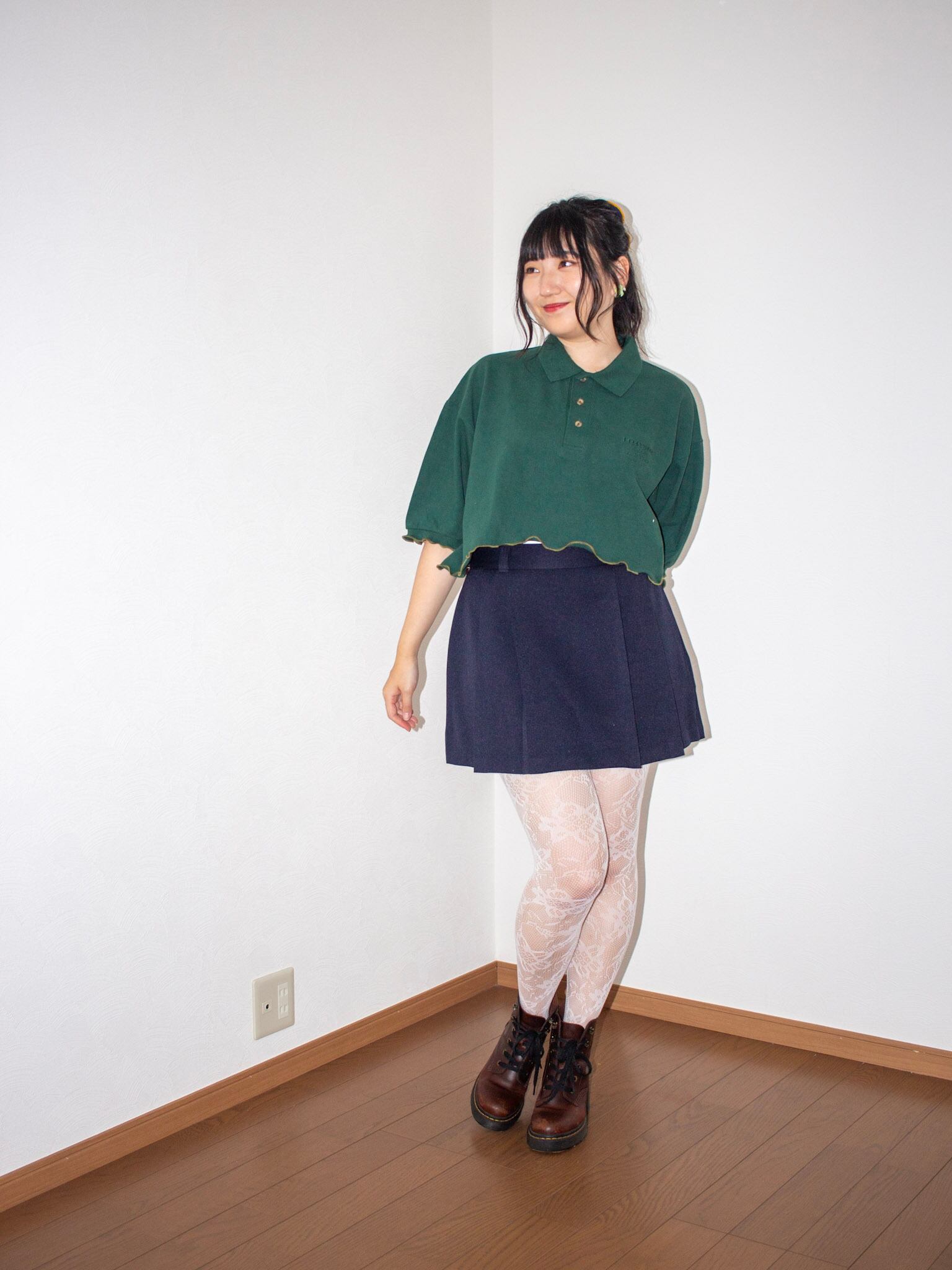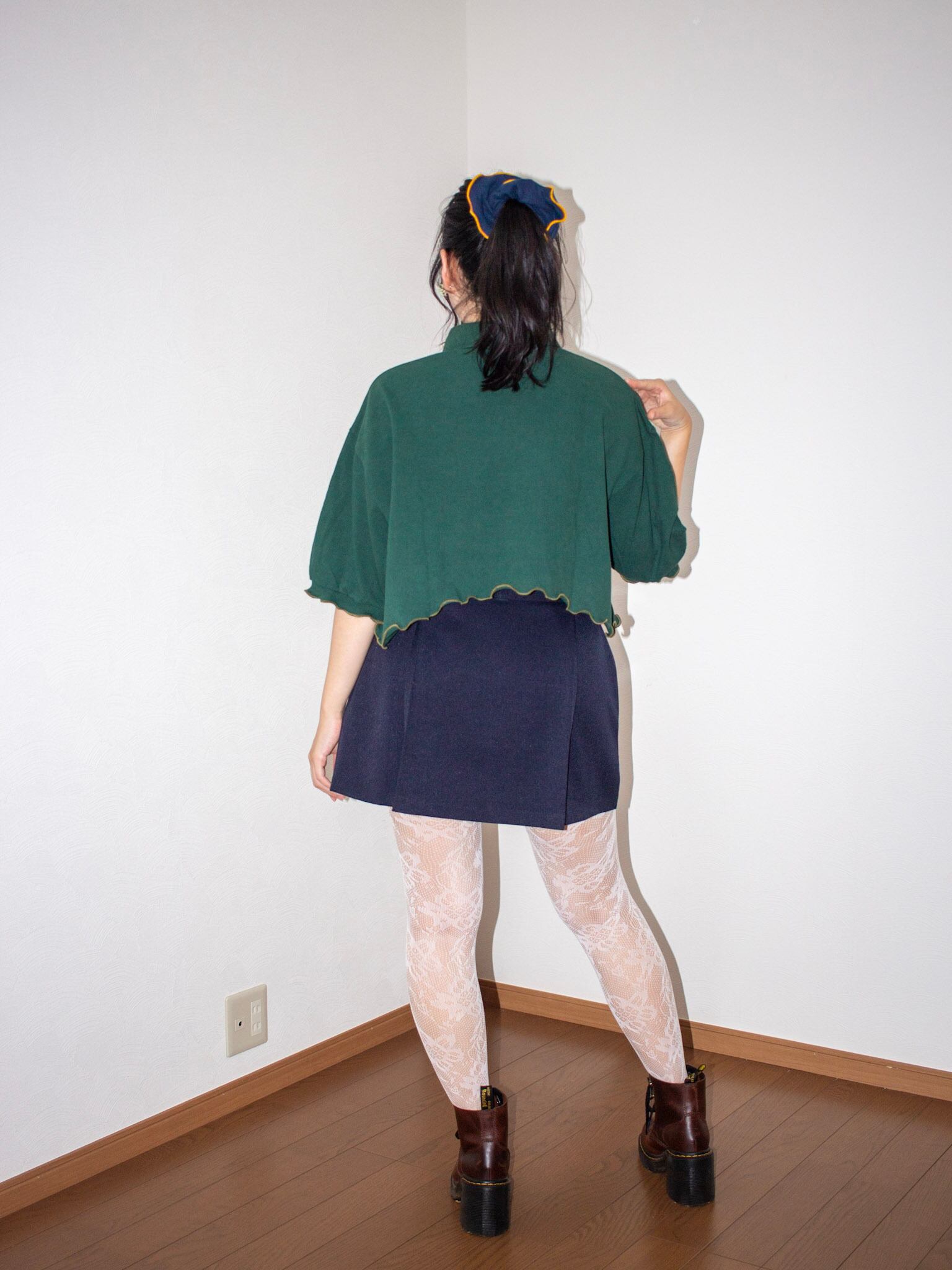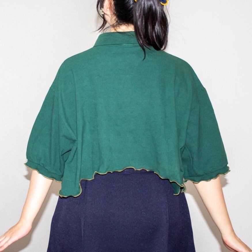 チビ丈カーキmellowリメイクポロシャツ グリーン