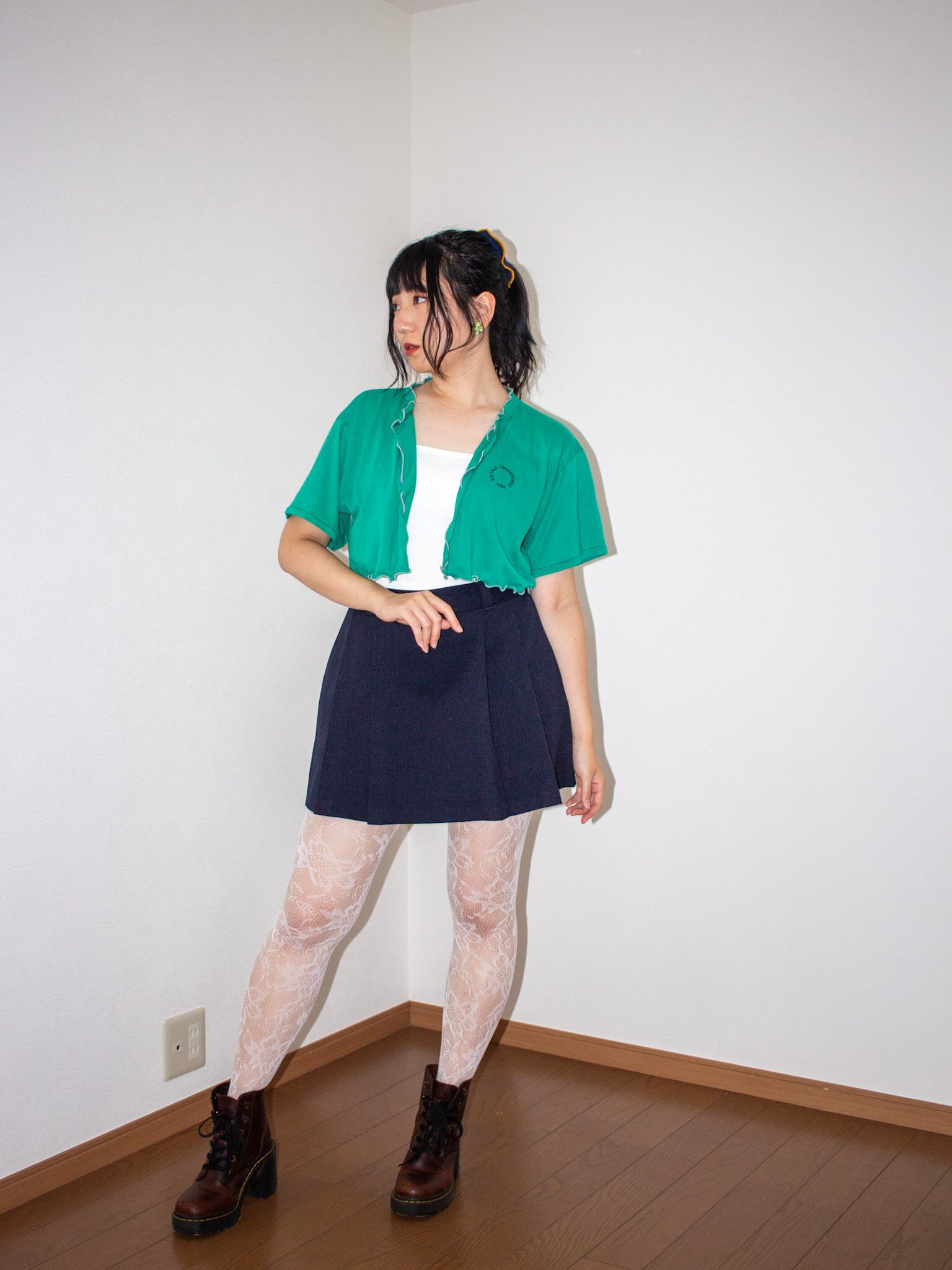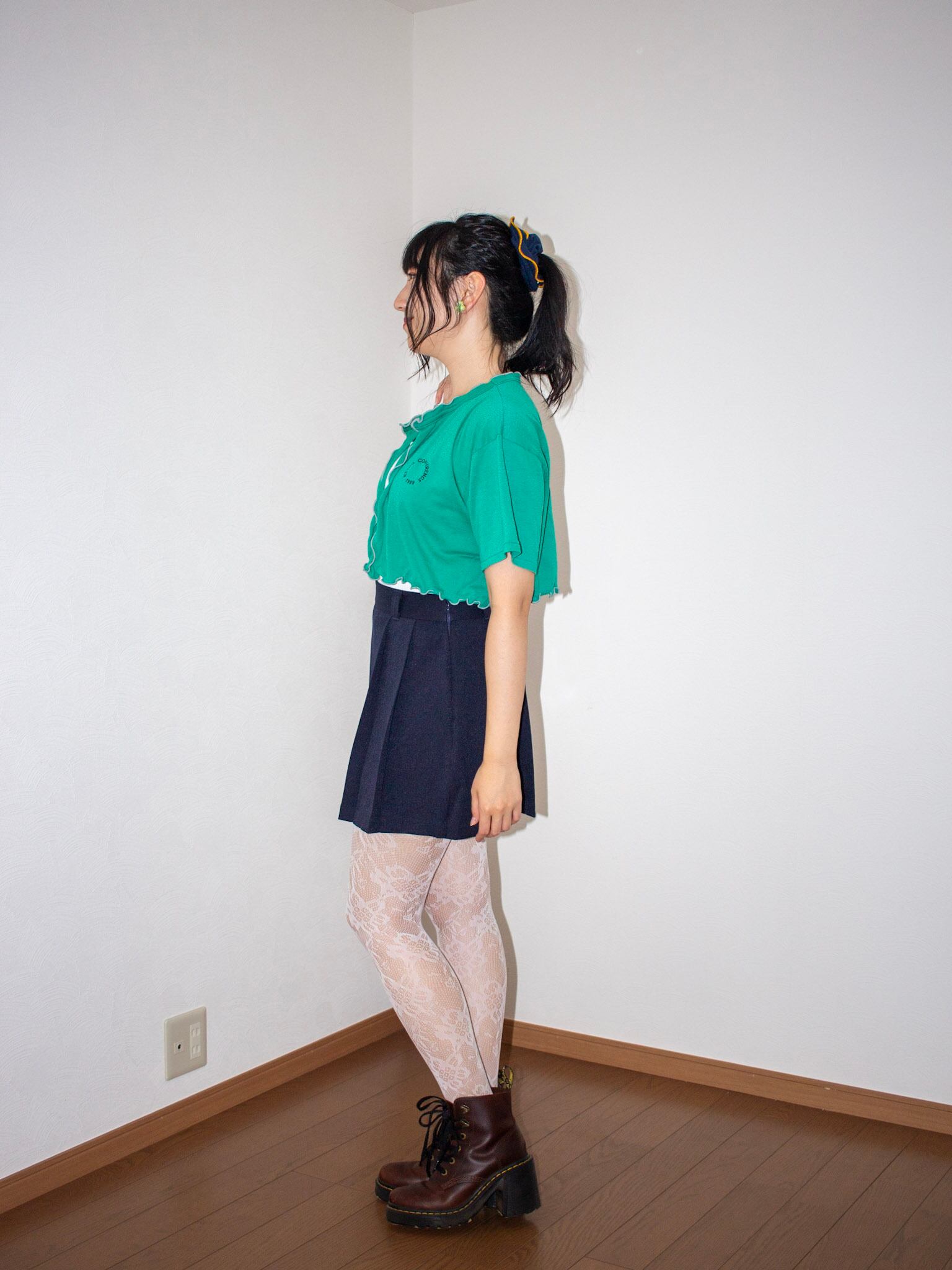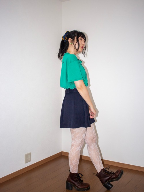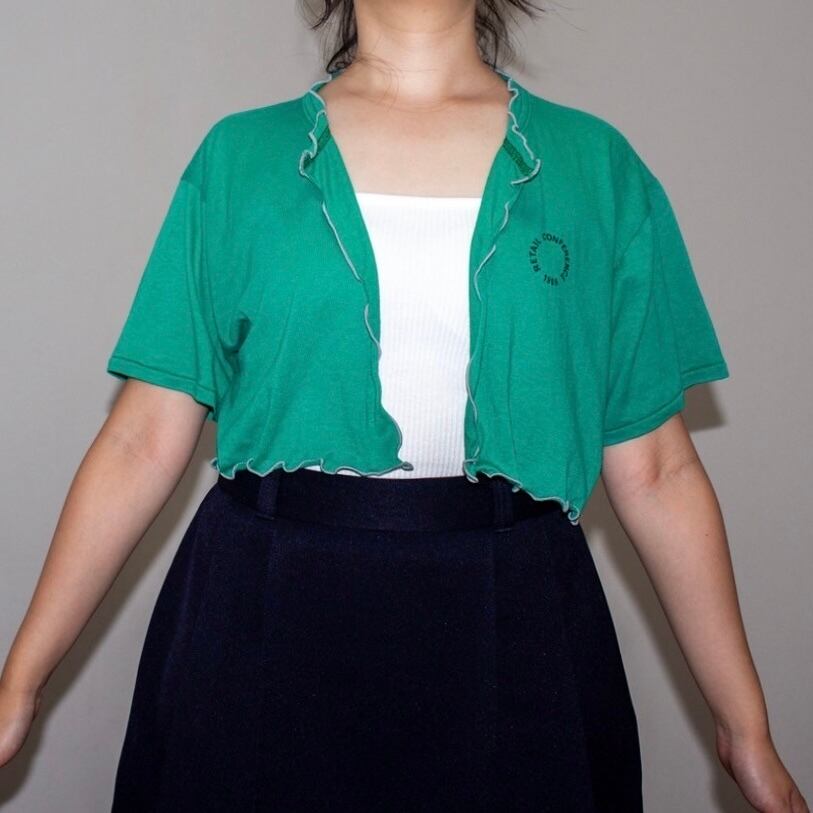 チビ丈グレーmellowリメイクTシャツ カーディガングリーン