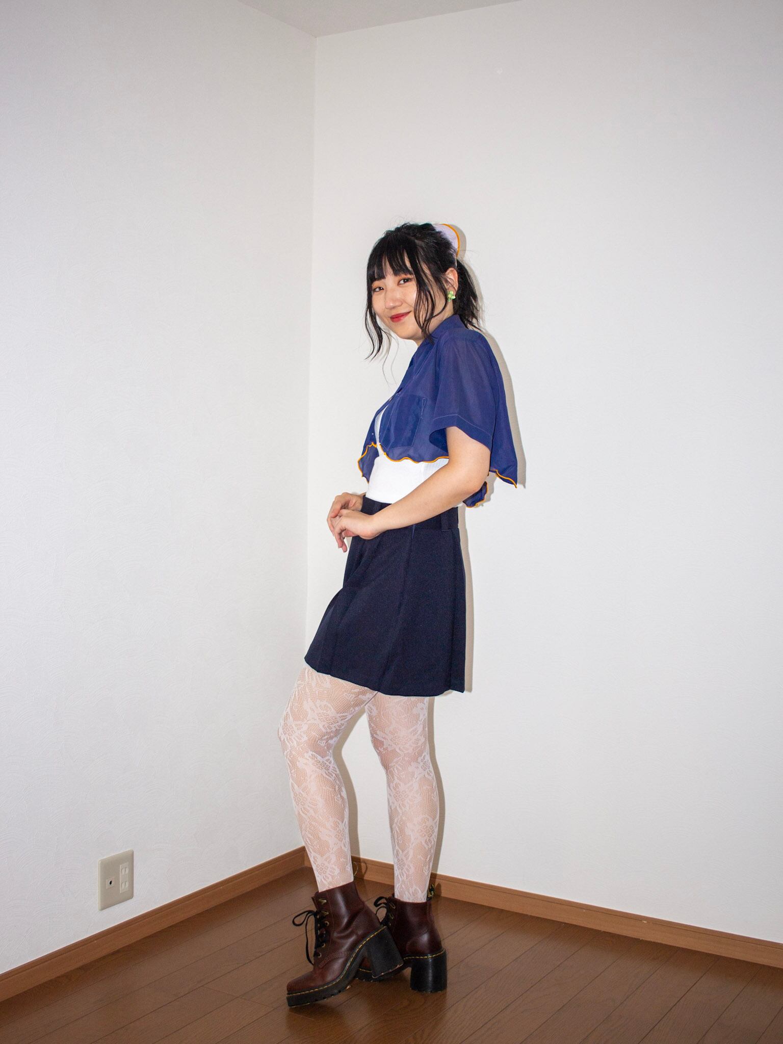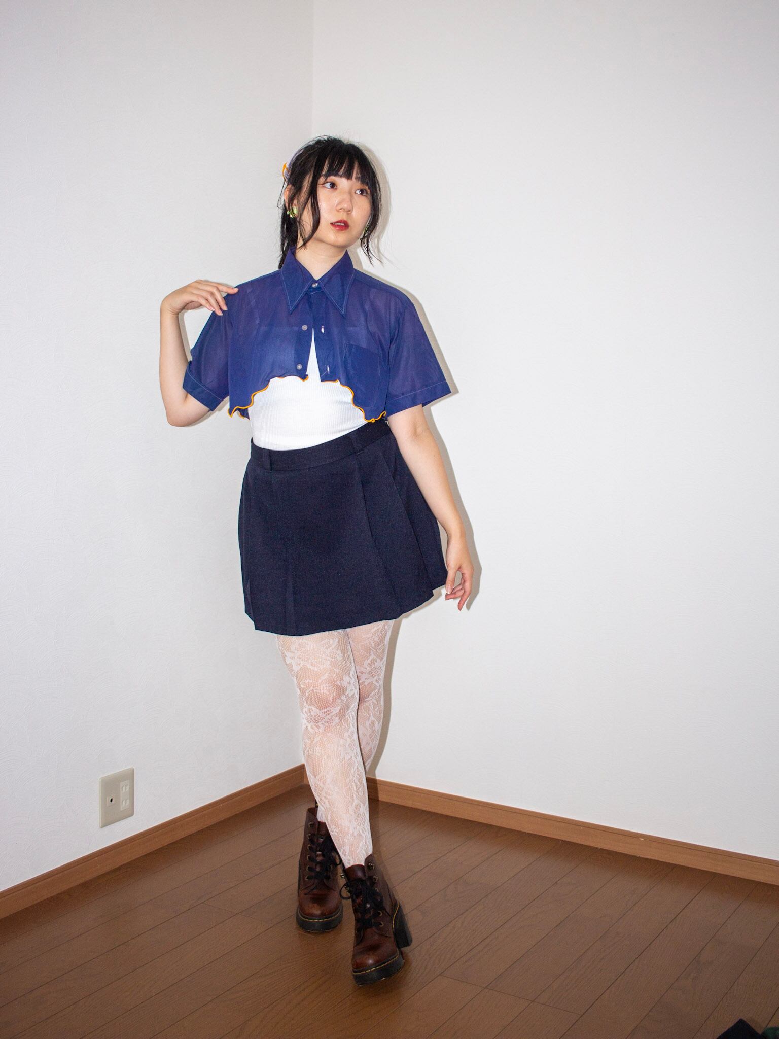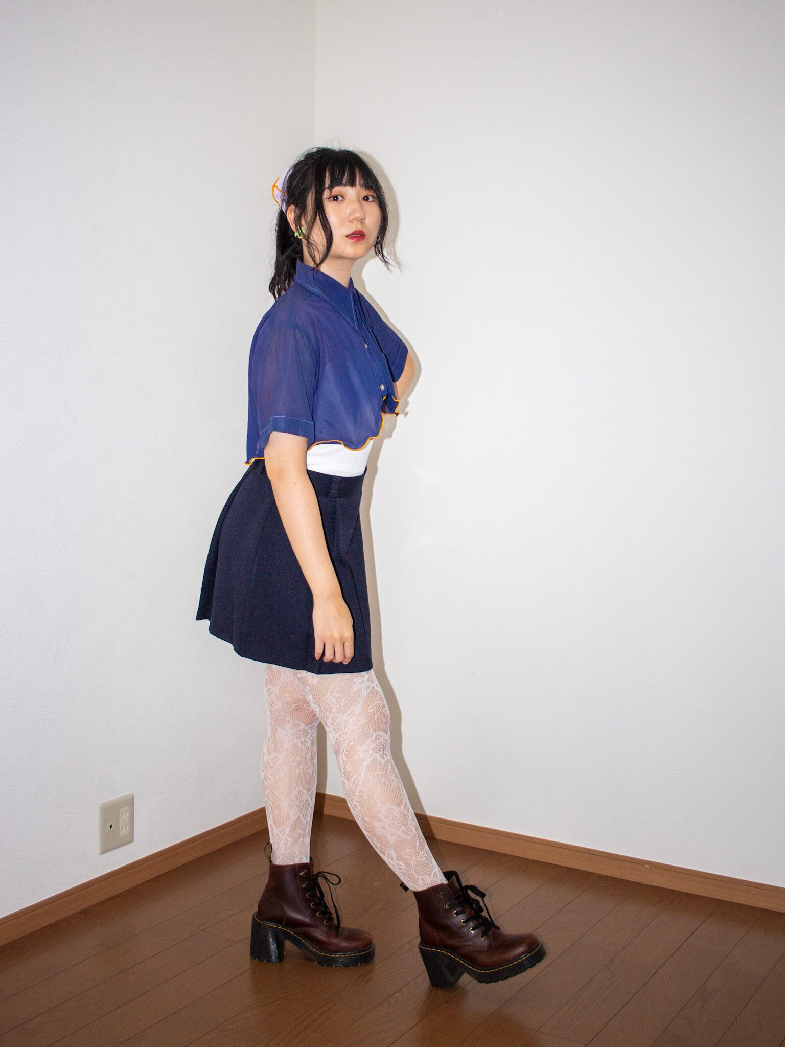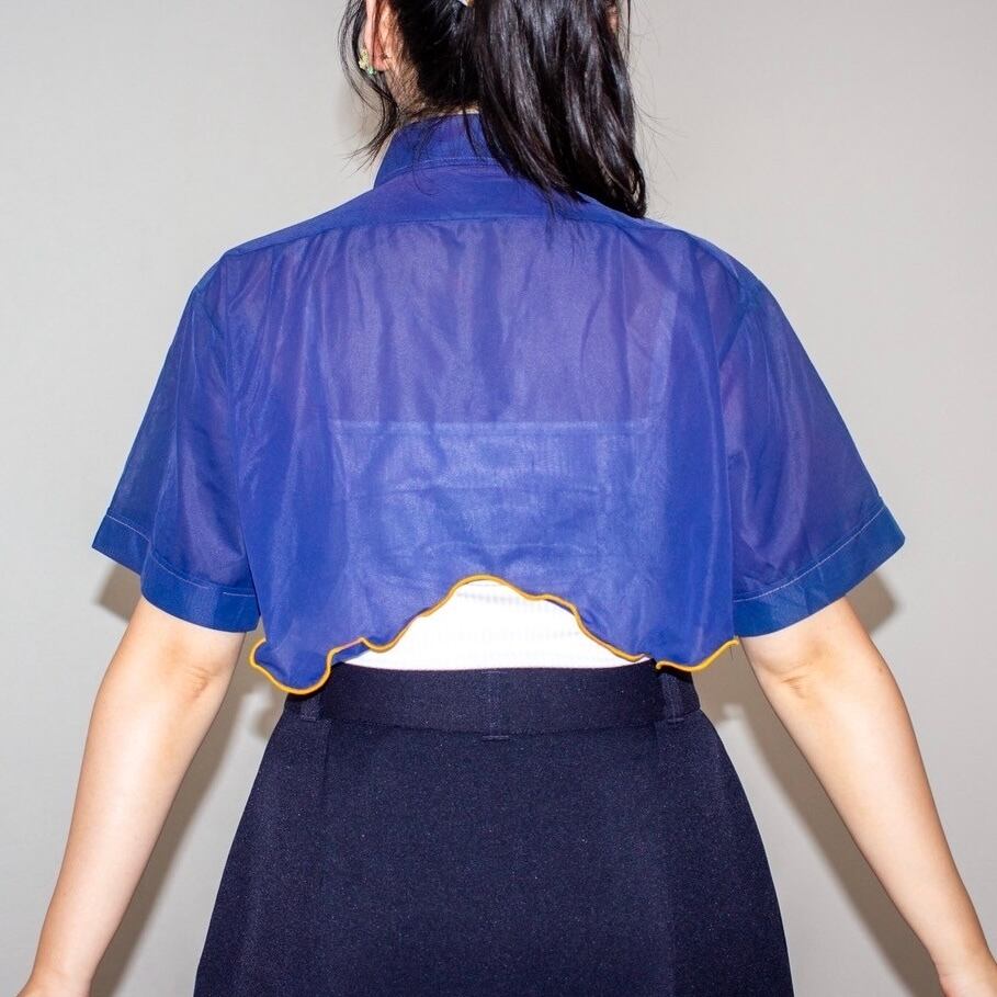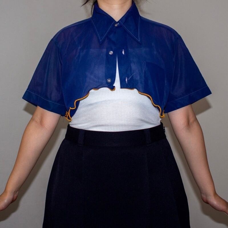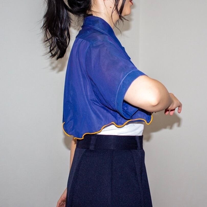 チビ丈オレンジmellowリメイクシアーシャツ ネイビー