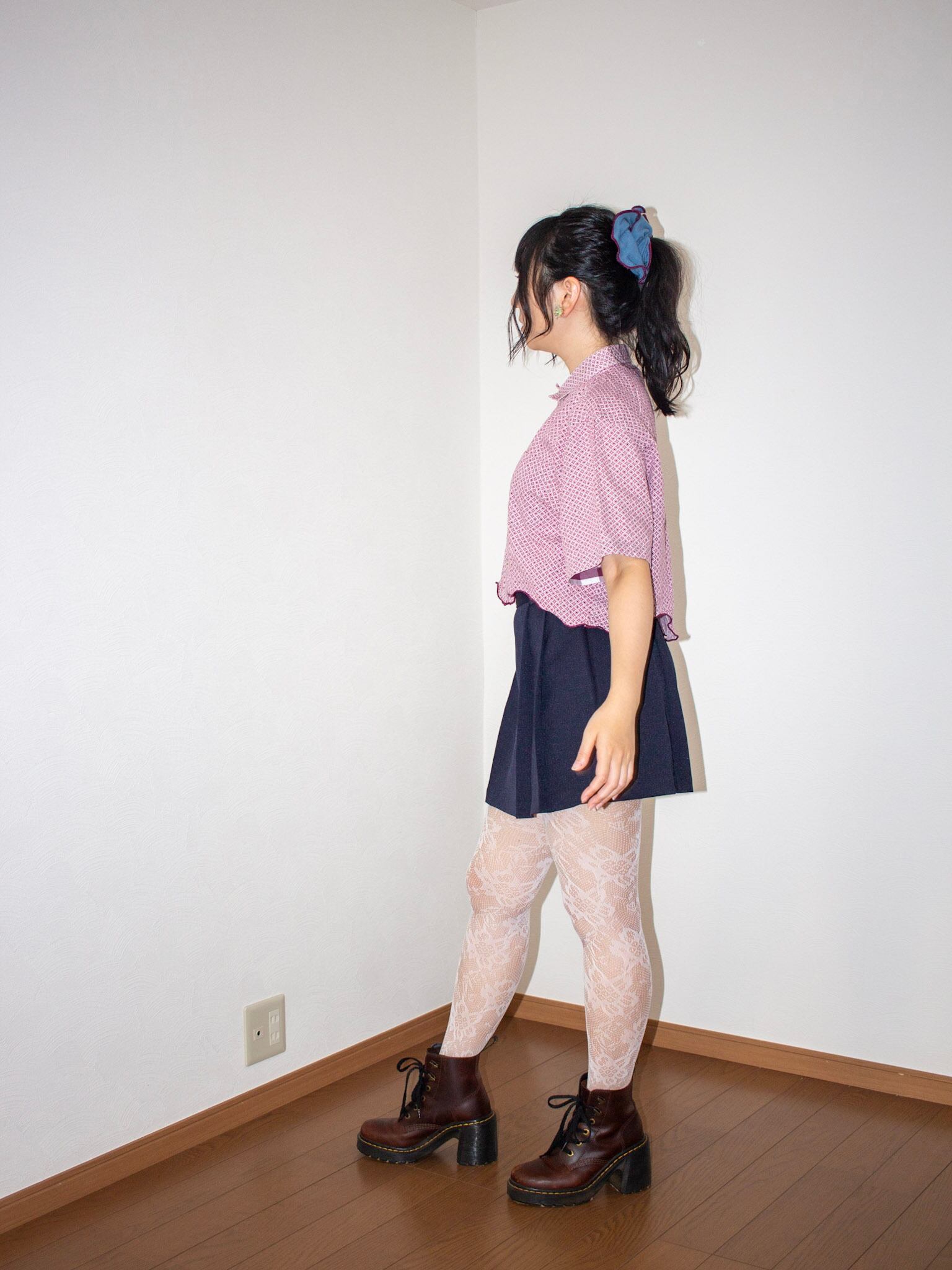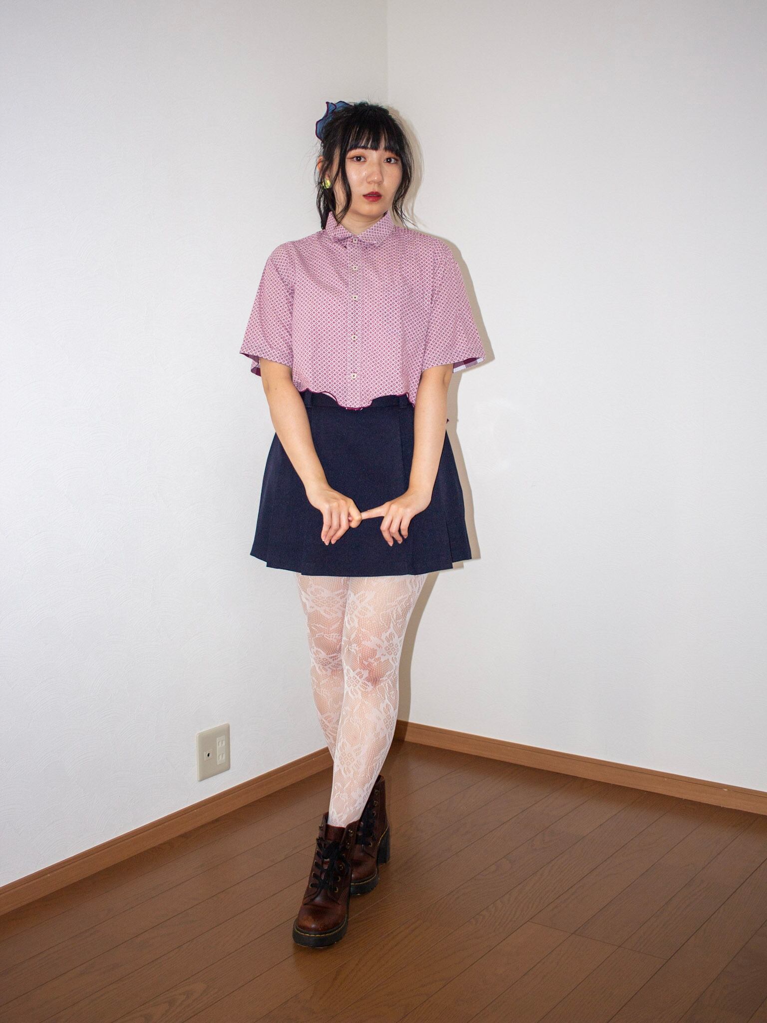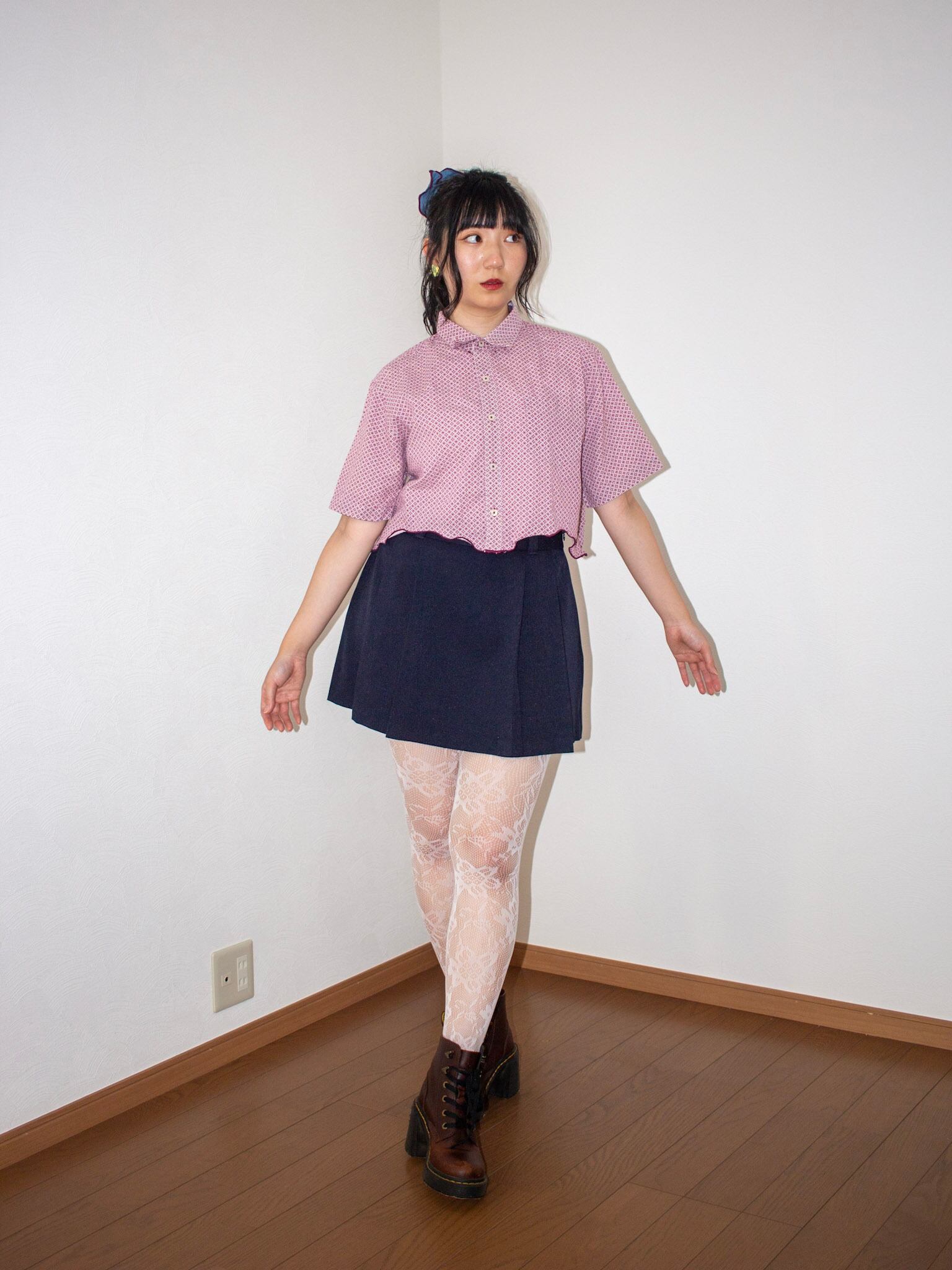 ネイビースカートはもちろん、パンツスタイルにも可愛い一点物です。