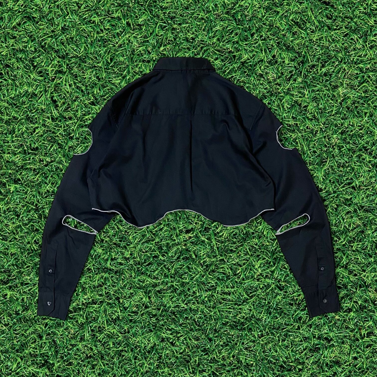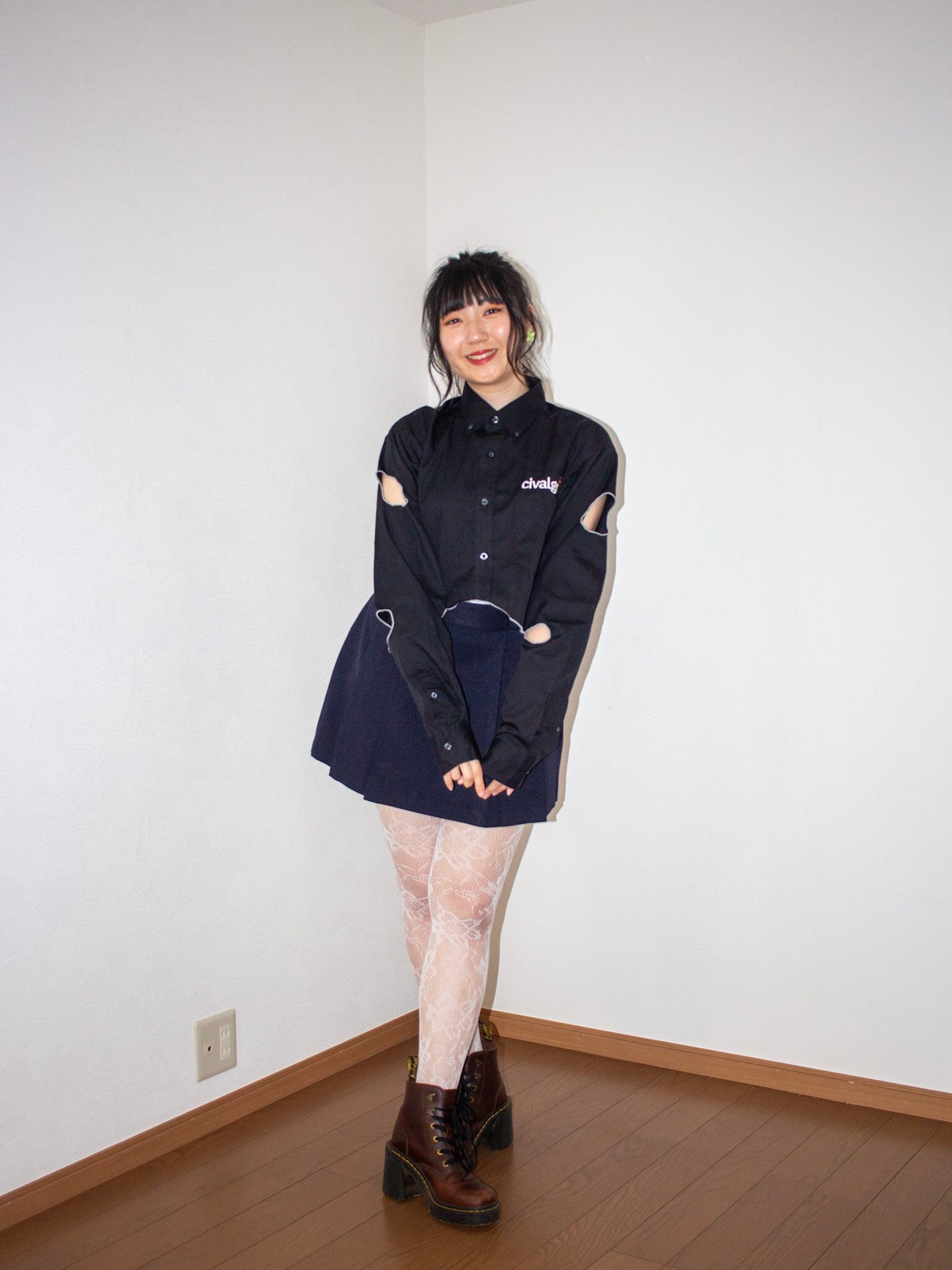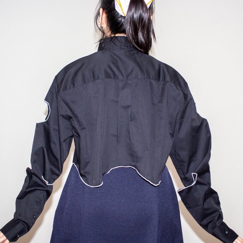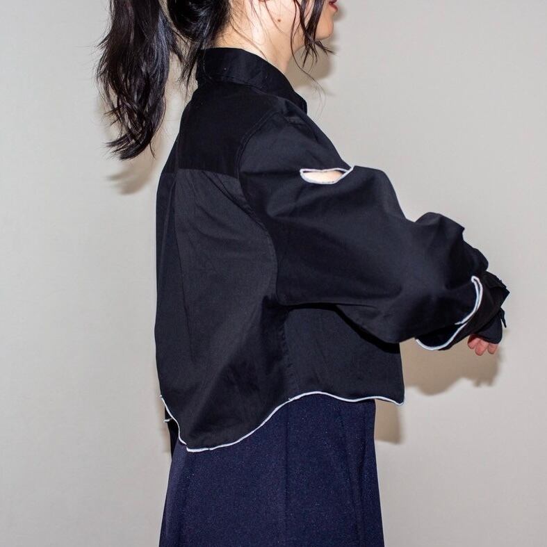 チビ丈mellowフリル個性派ワークシャツ ブラック