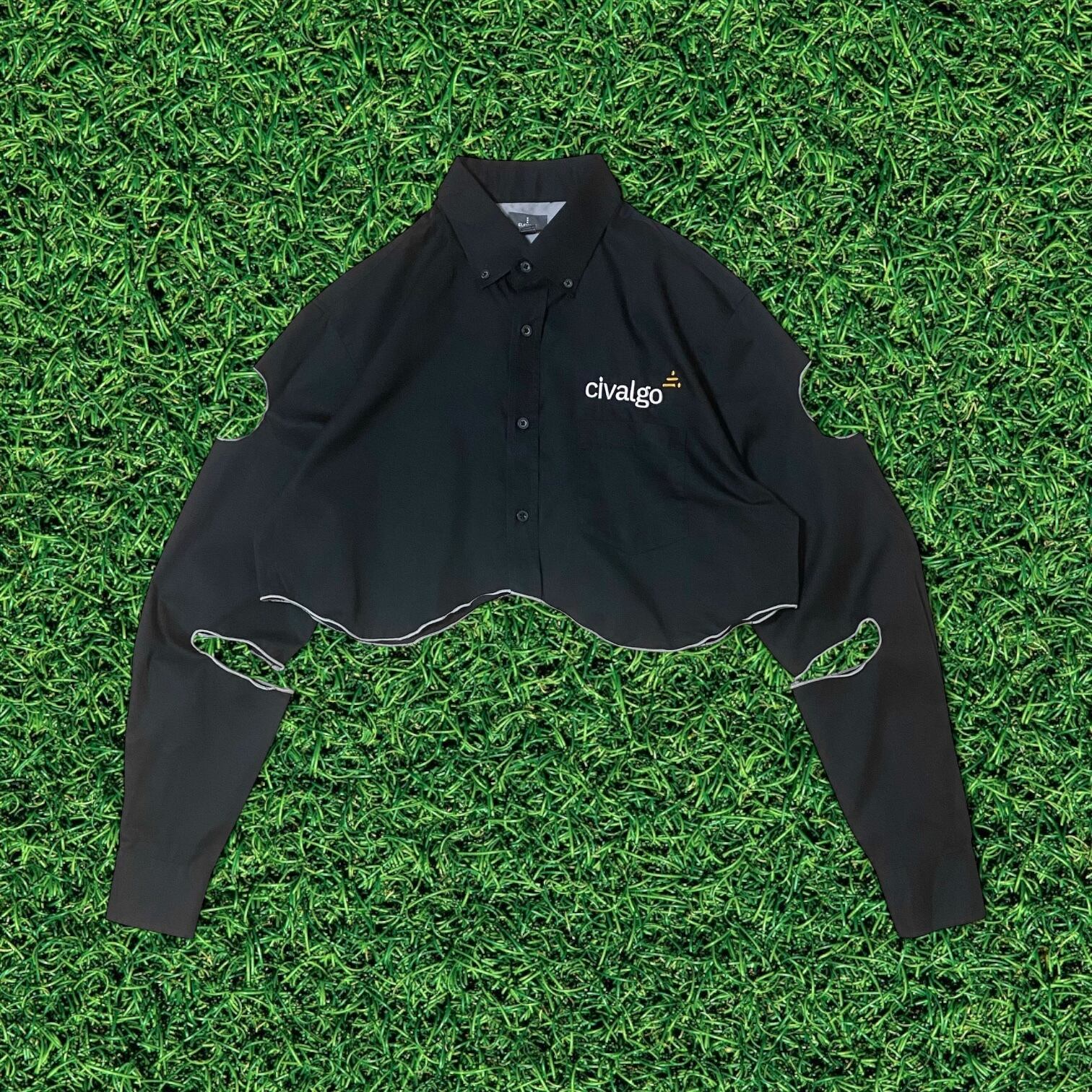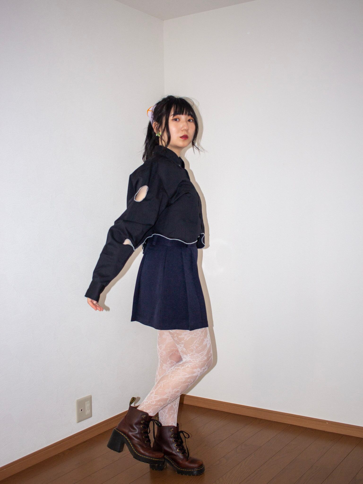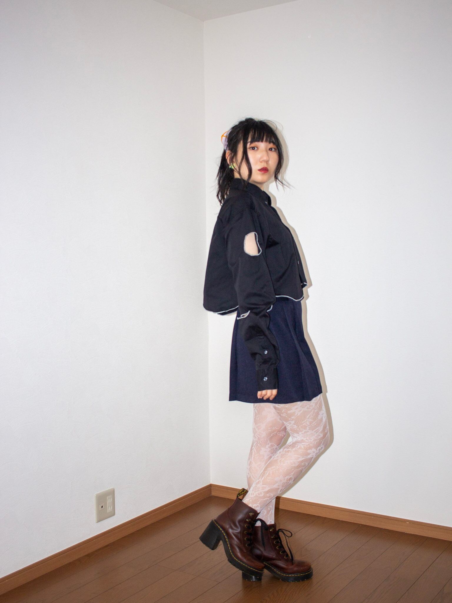 チビ丈mellowフリル個性派ワークシャツ ブラック