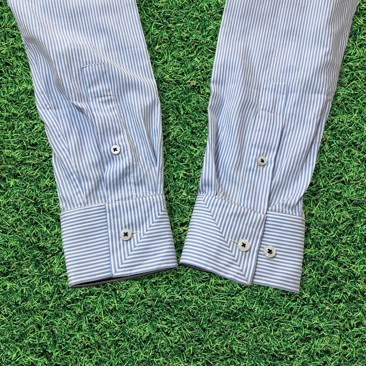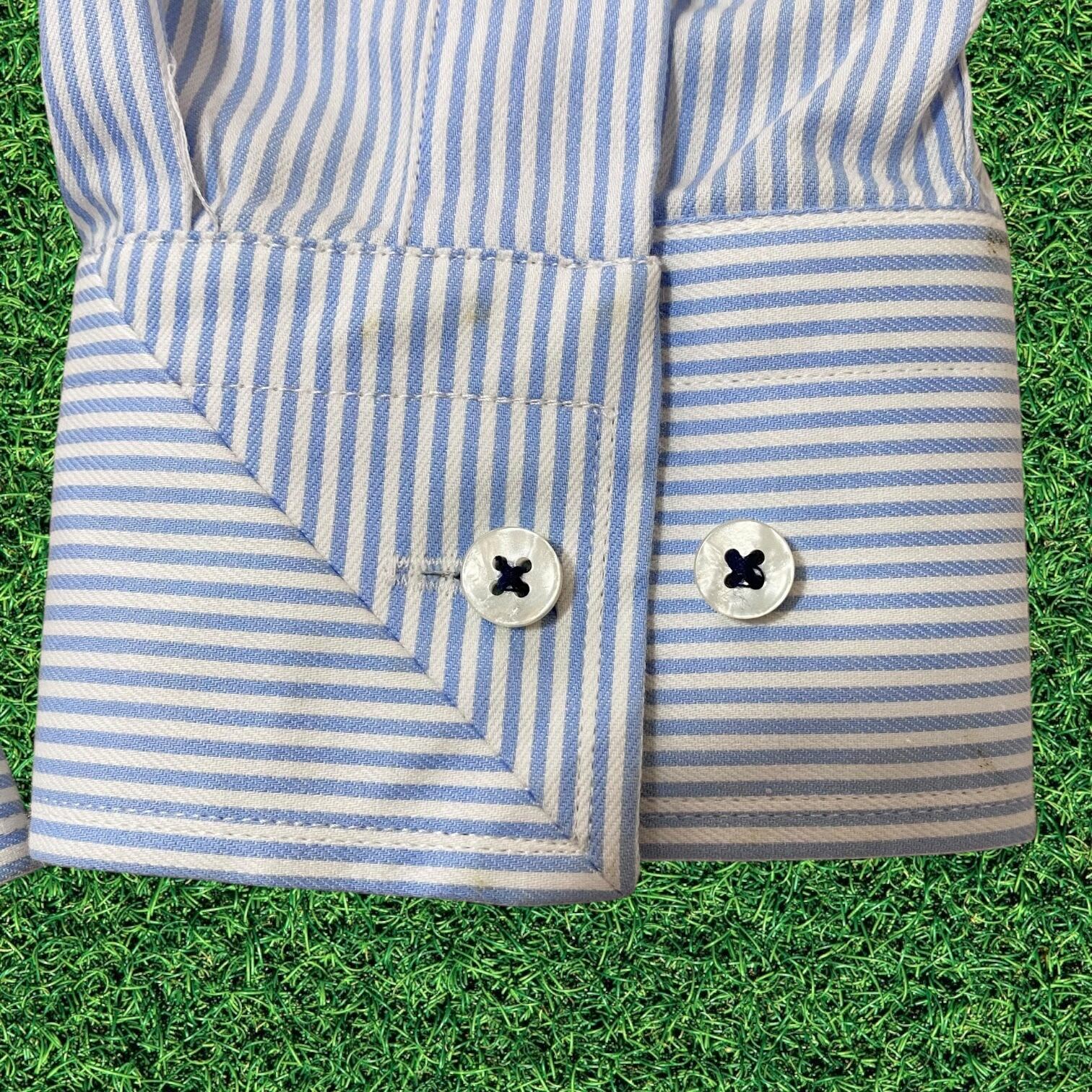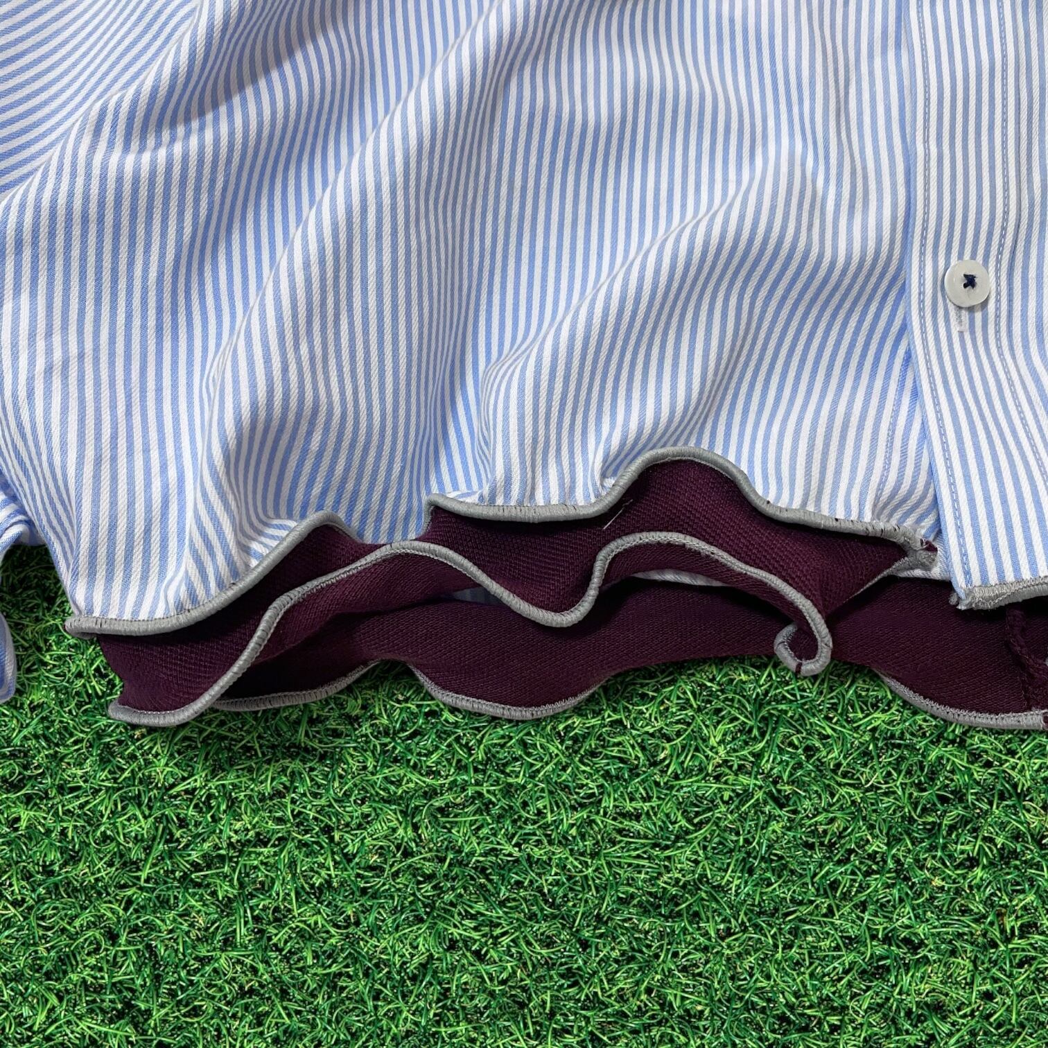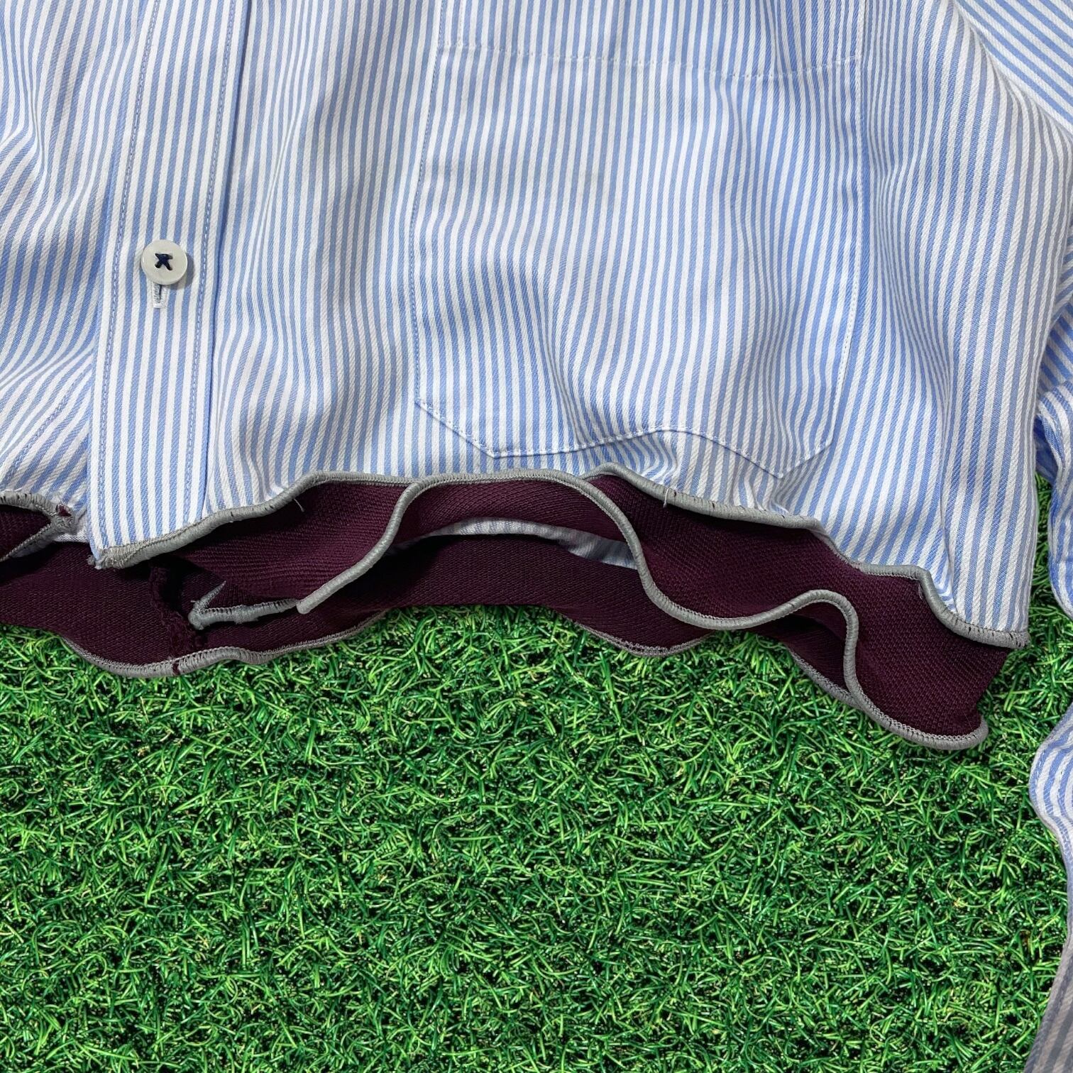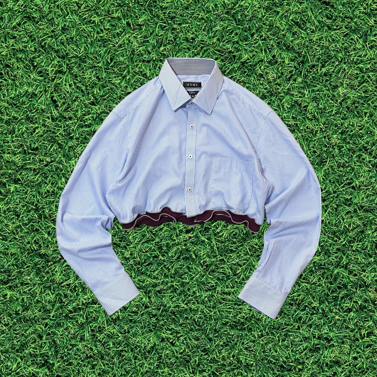 【リメイク古着】再構築チビ丈mellowフリル個性派シャツ ストライプ