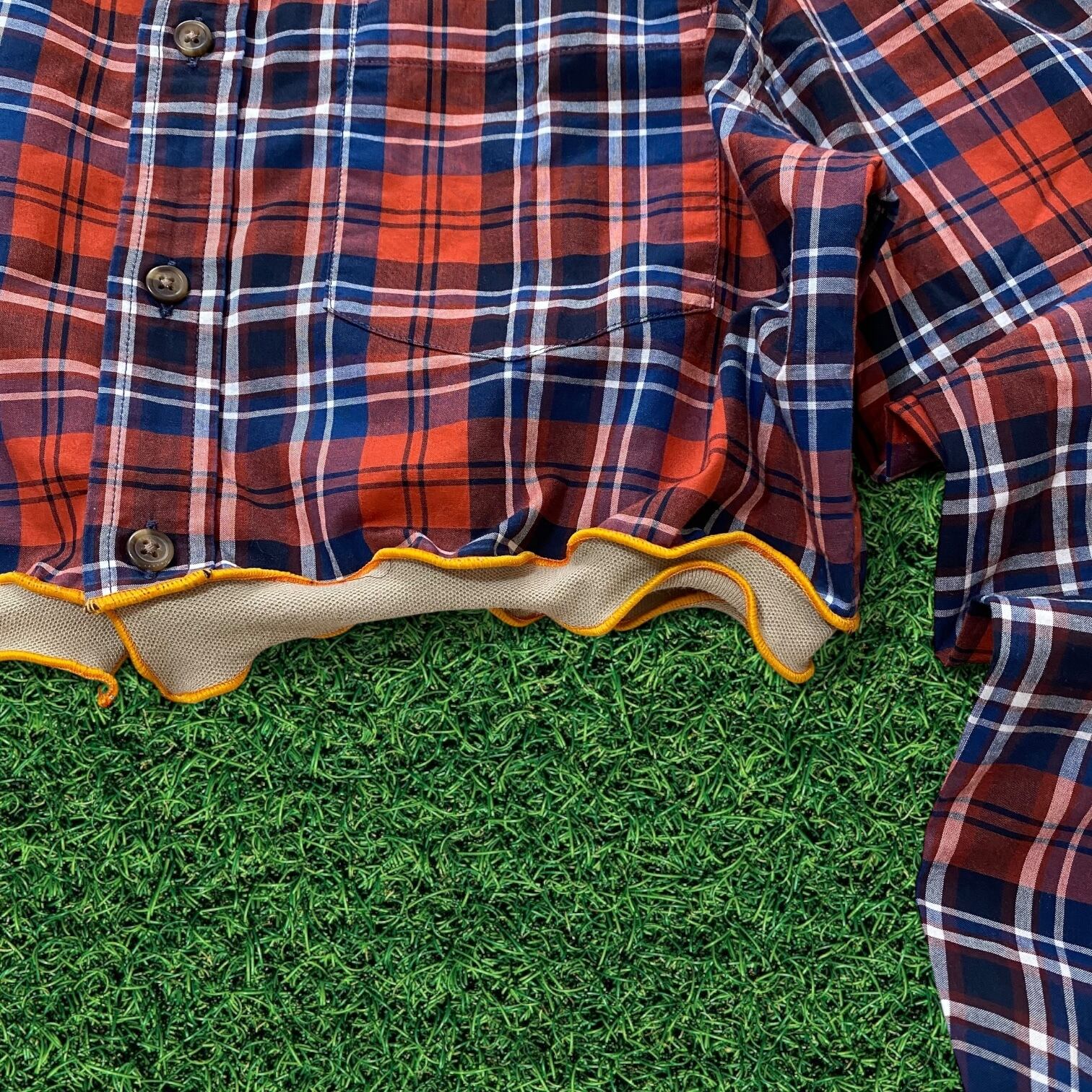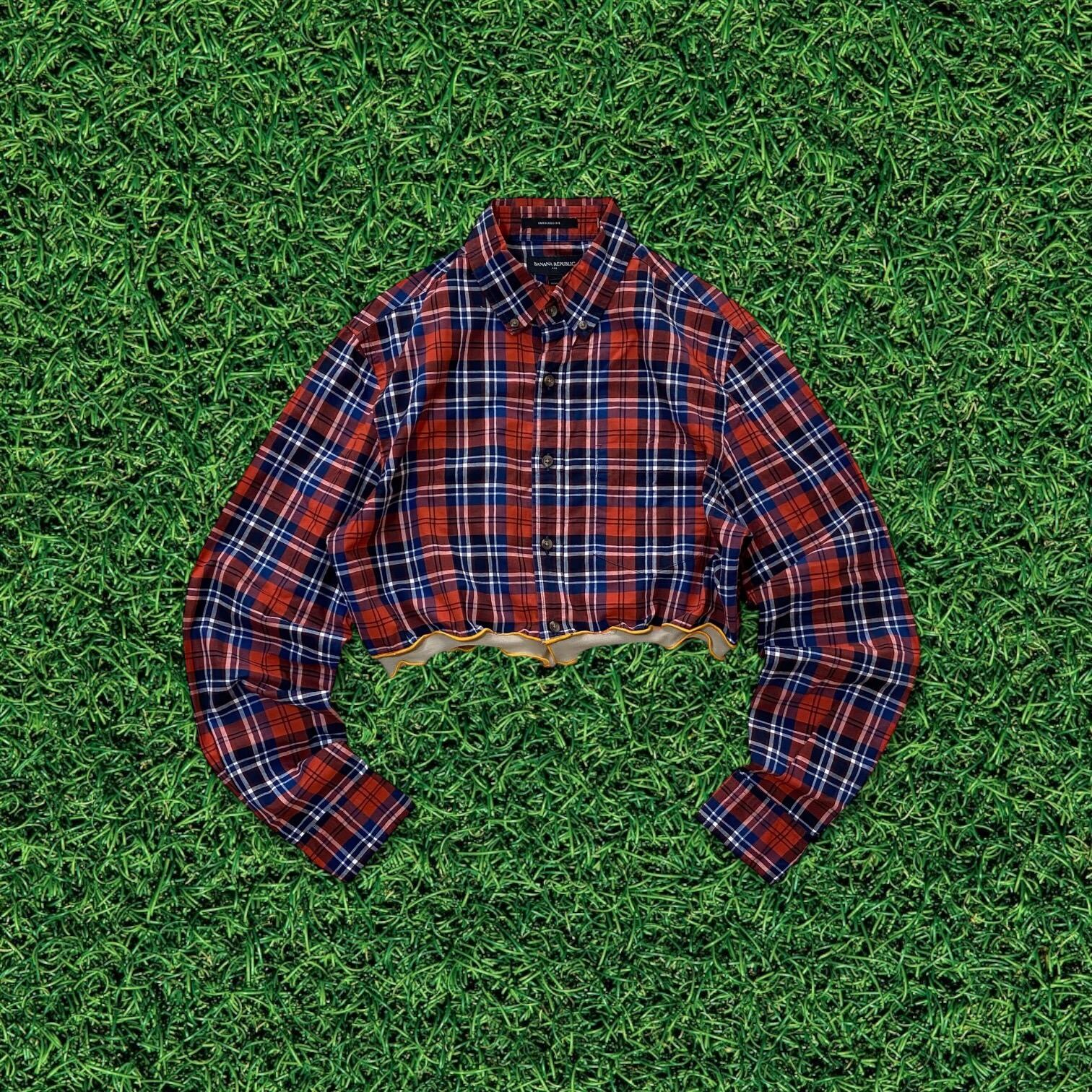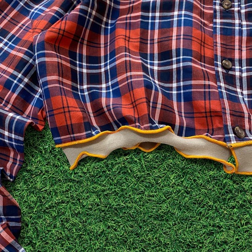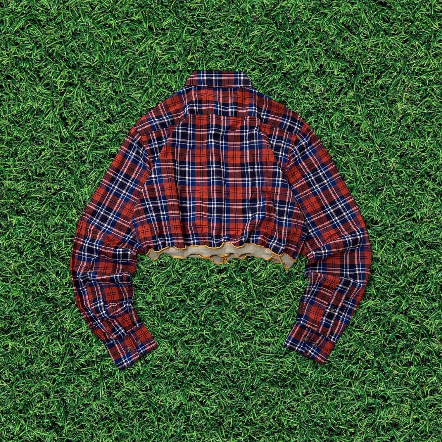 【リメイク古着】再構築チビ丈mellowフリル個性派チェックシャツ