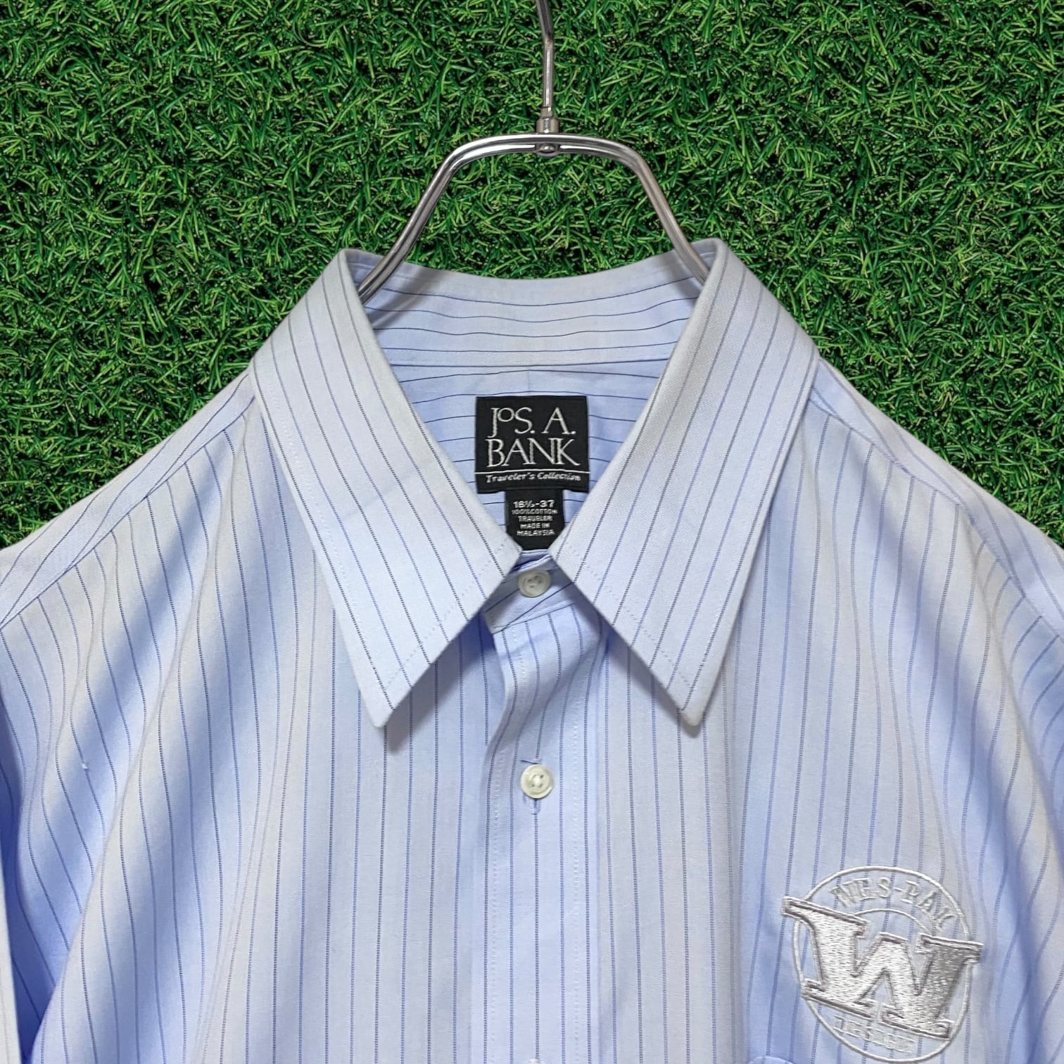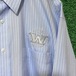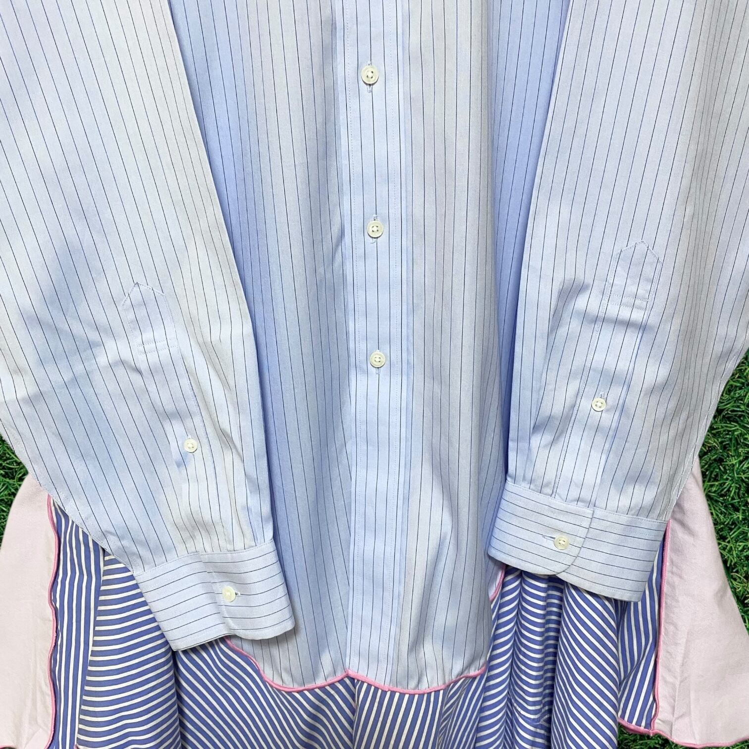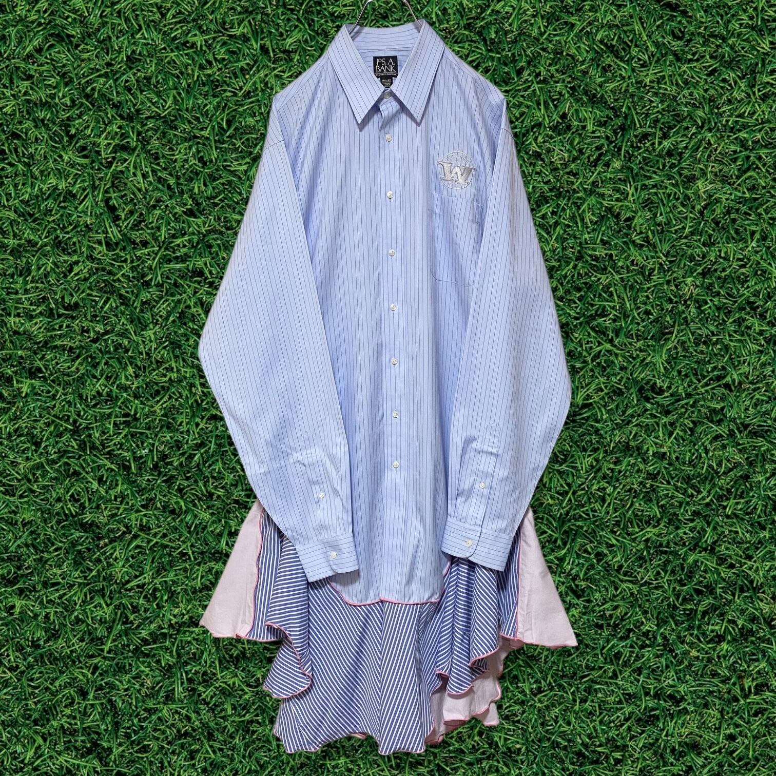 ストライプのワークシャツとシャツ生地を再構築したリメイクシャツワンピース。