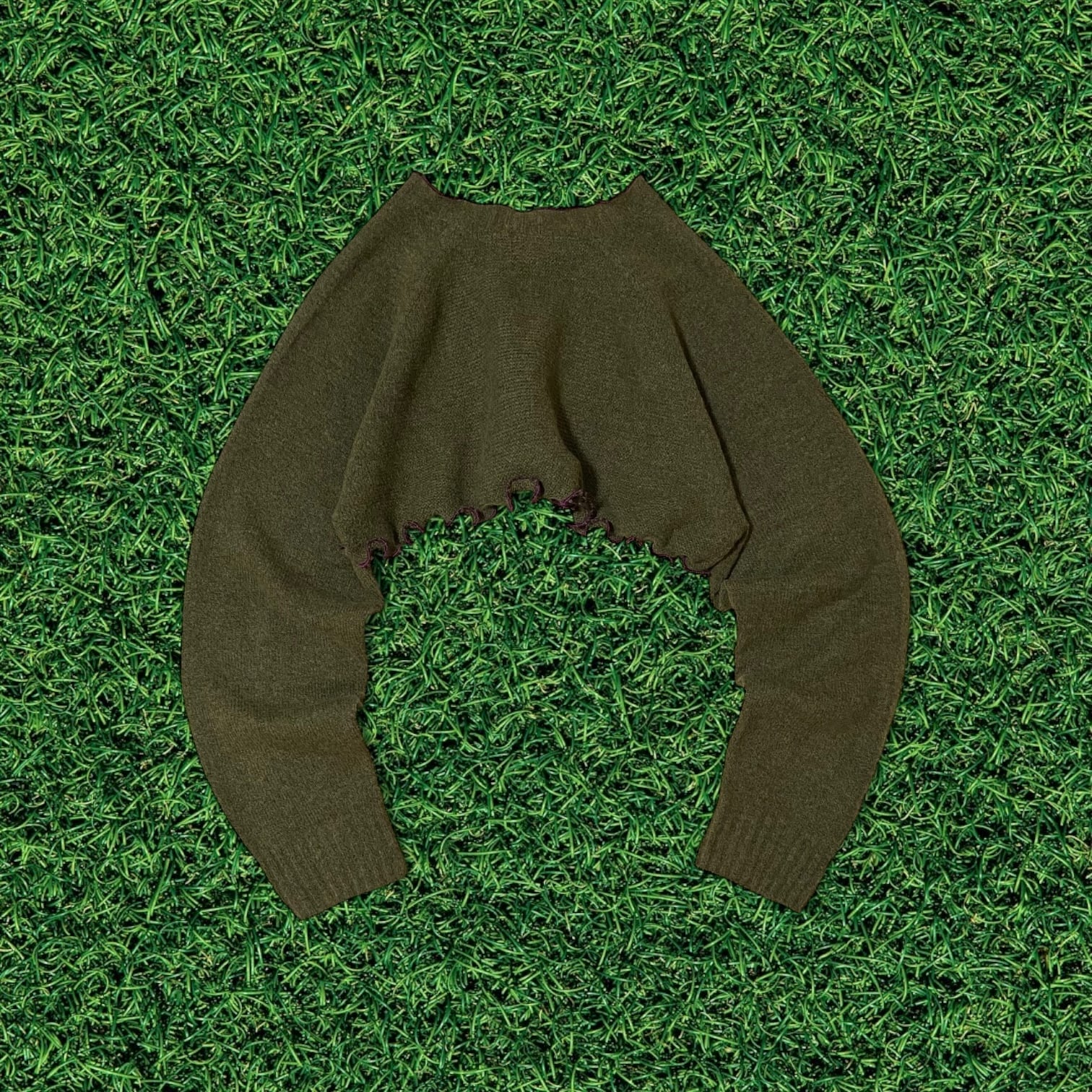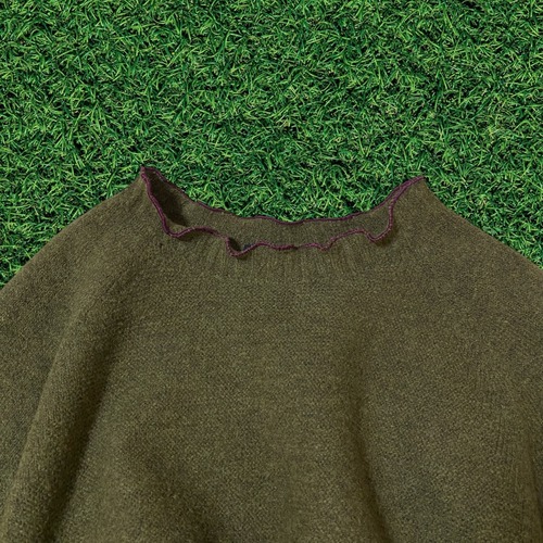 【リメイク古着】再構築メローフリルチビ丈ニットセーター カーキ 短丈レディース