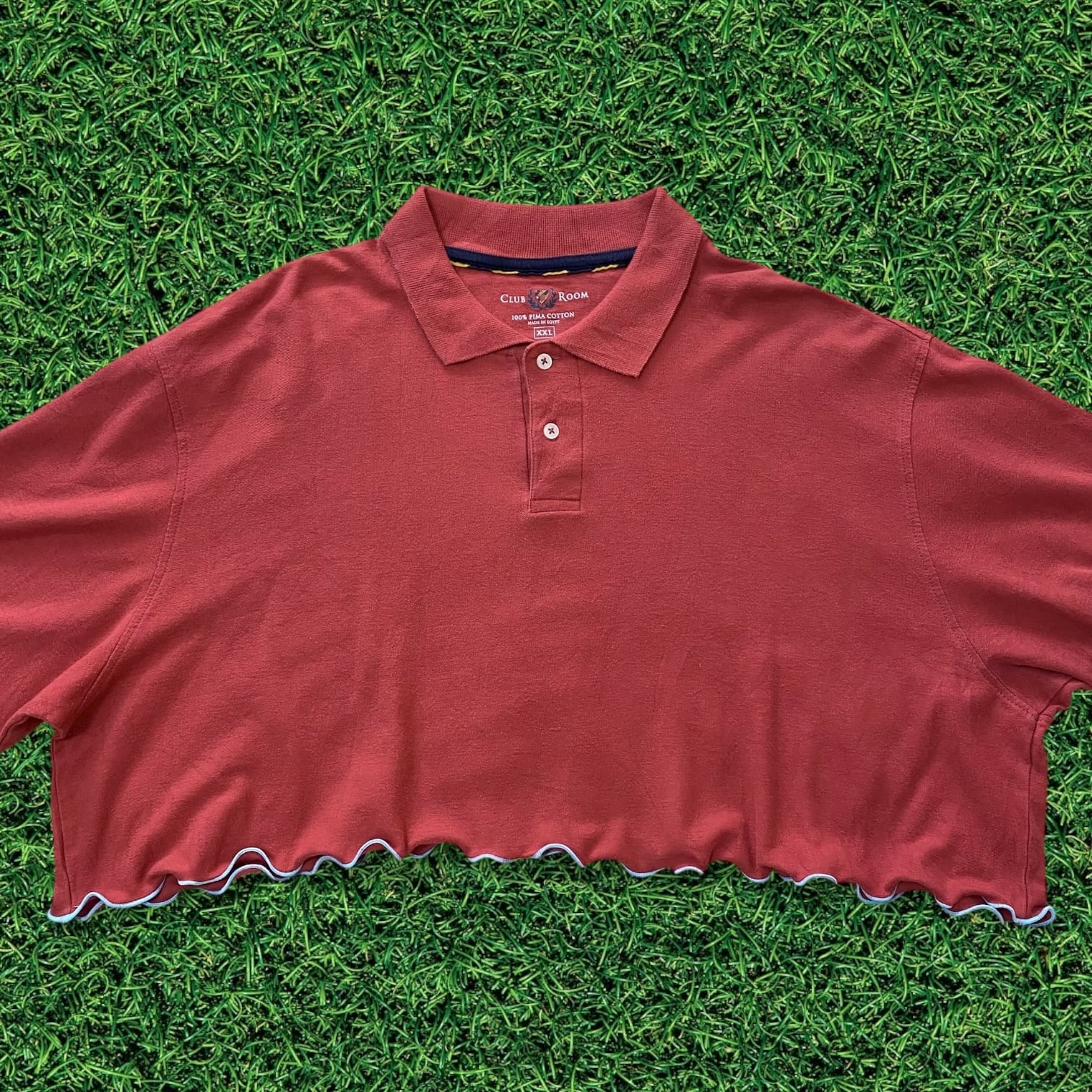 【リメイク古着】再構築USAポロシャツ×ストライプシャツ袖メローフリル