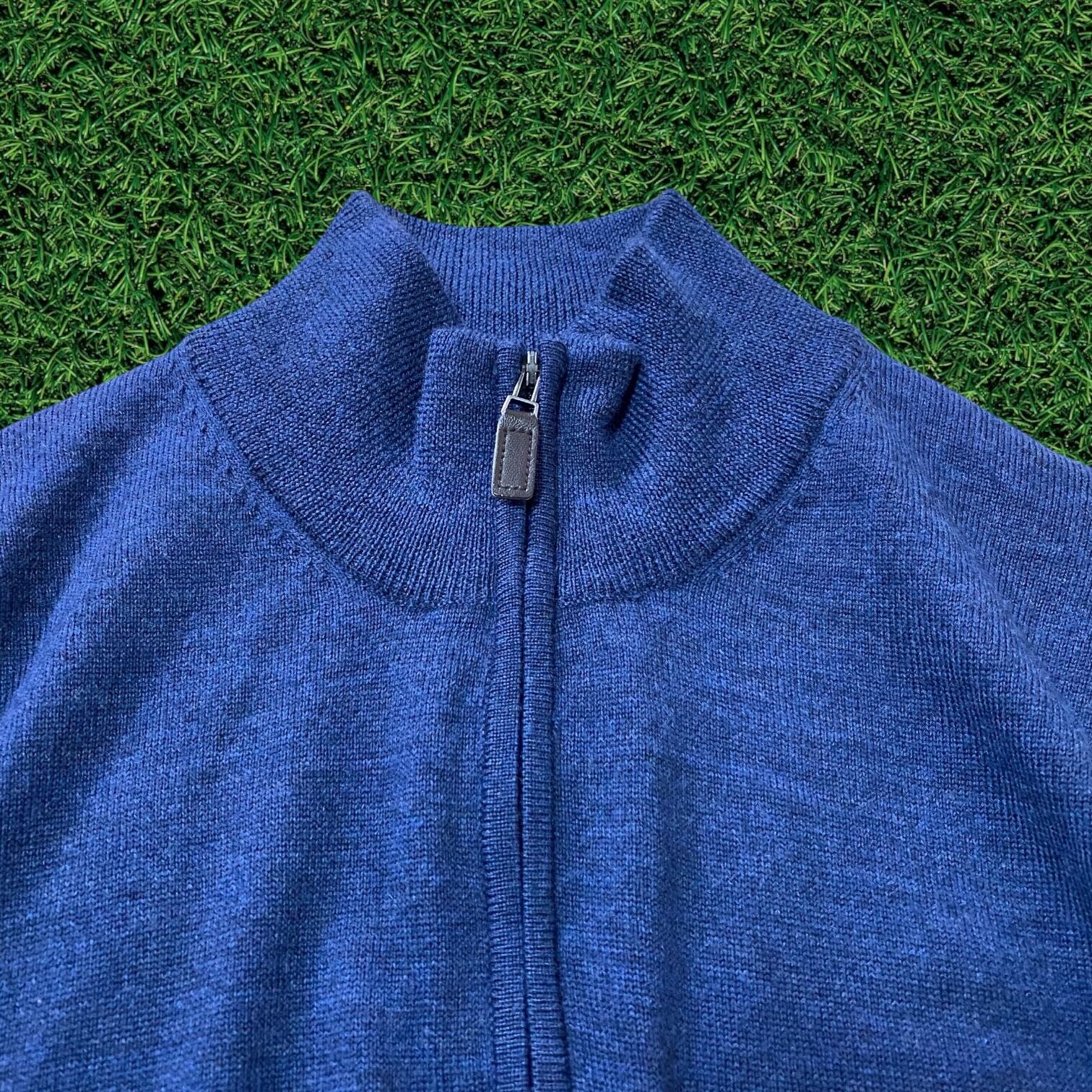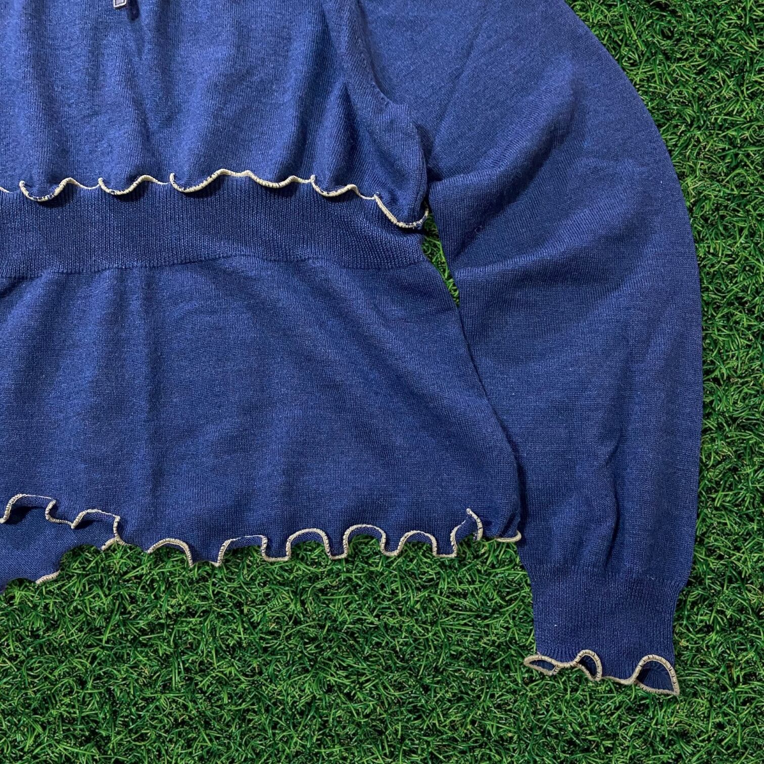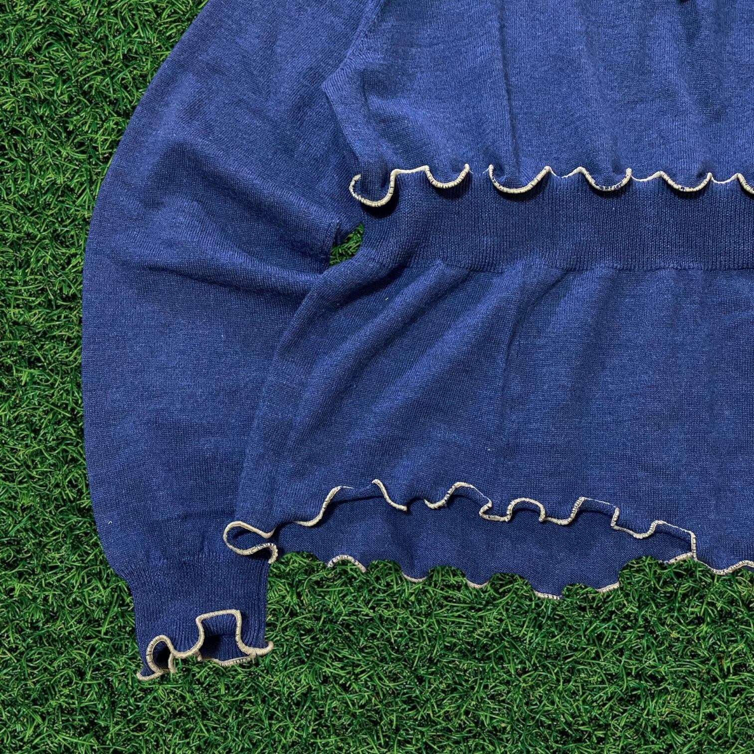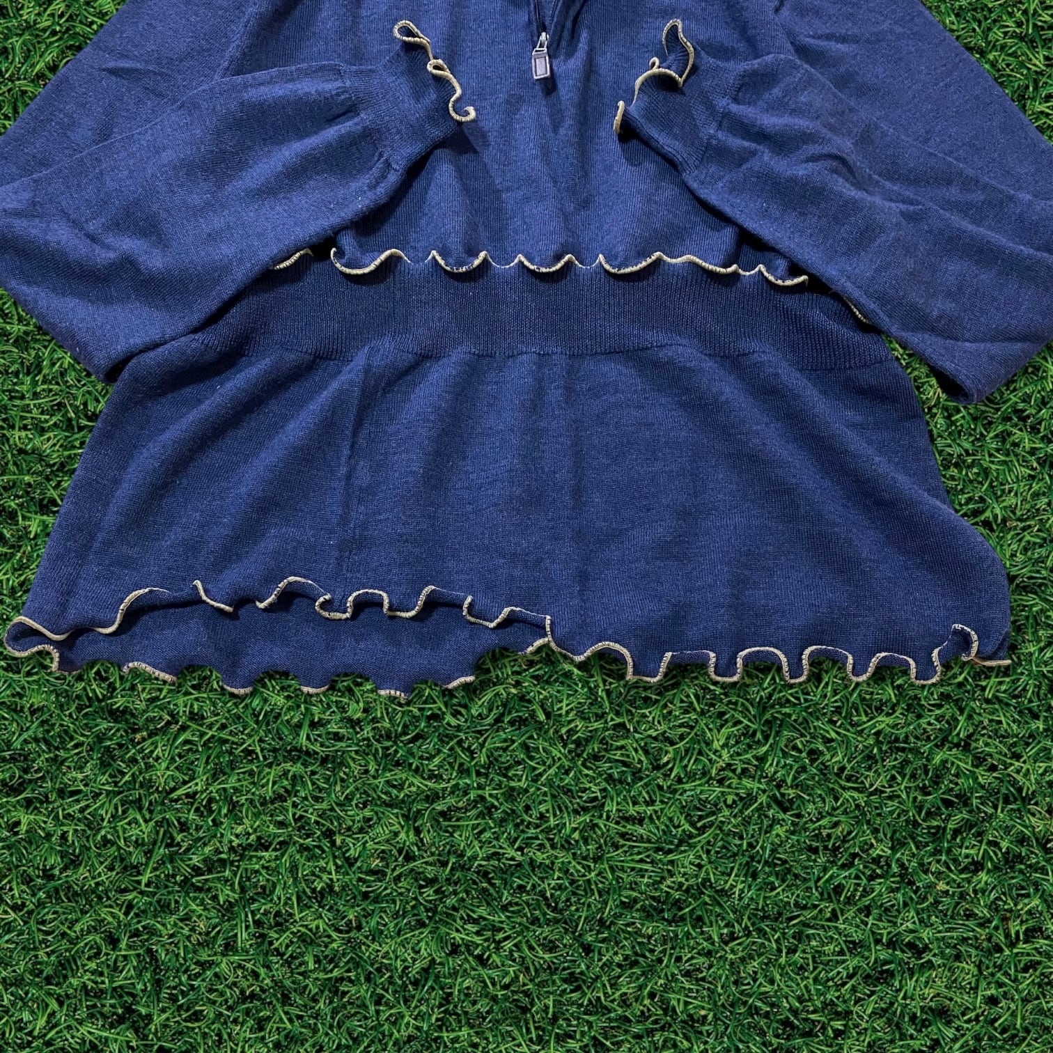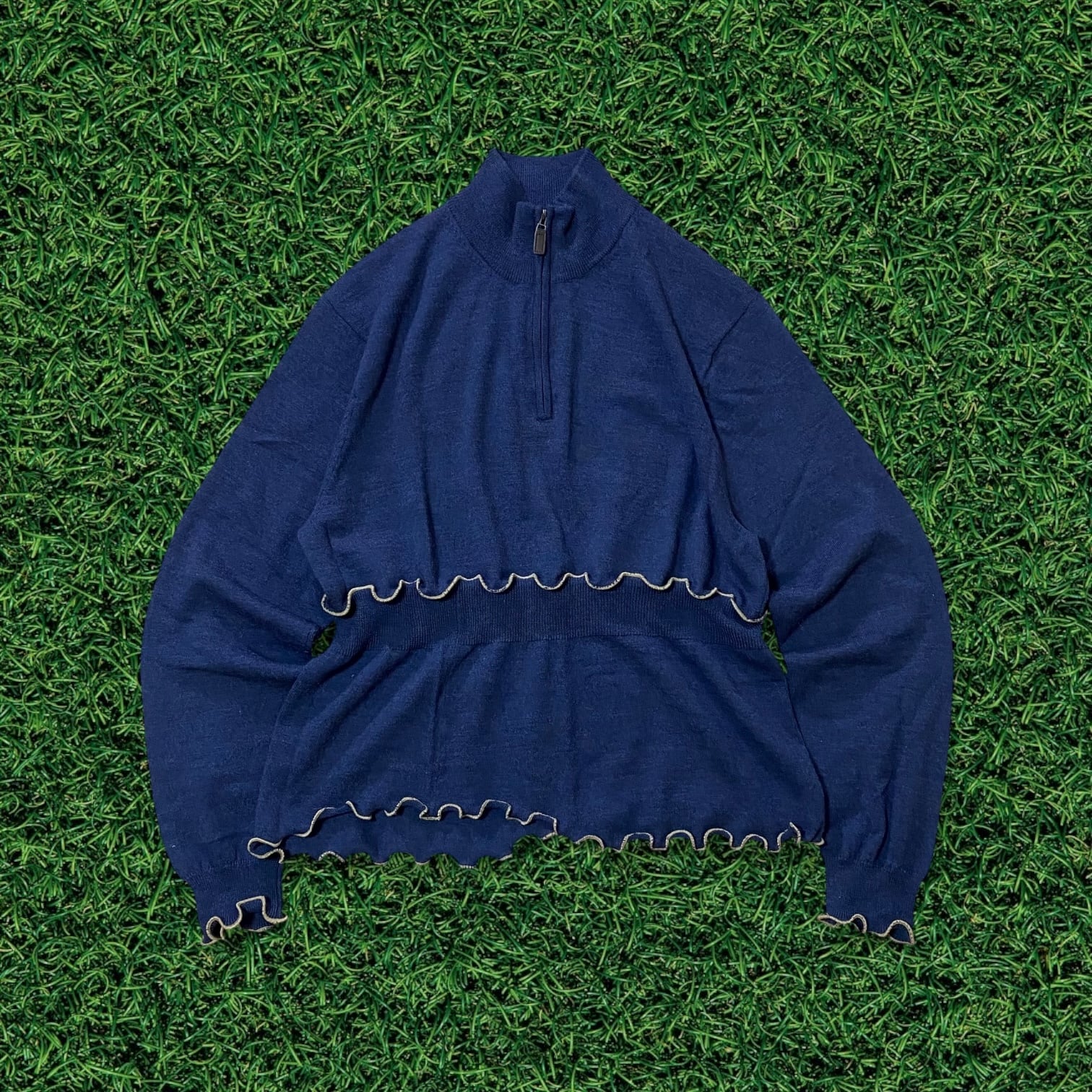 【リメイク古着】アシンメトリーハーフジップニット ネイビーメローフリル再構築