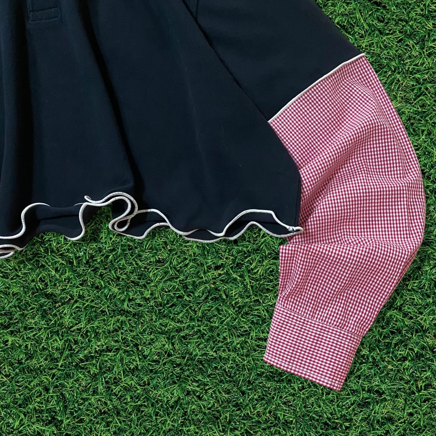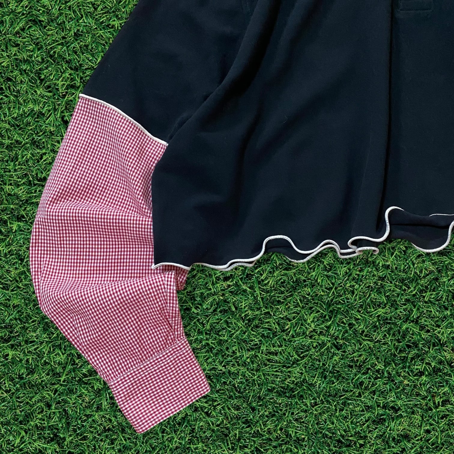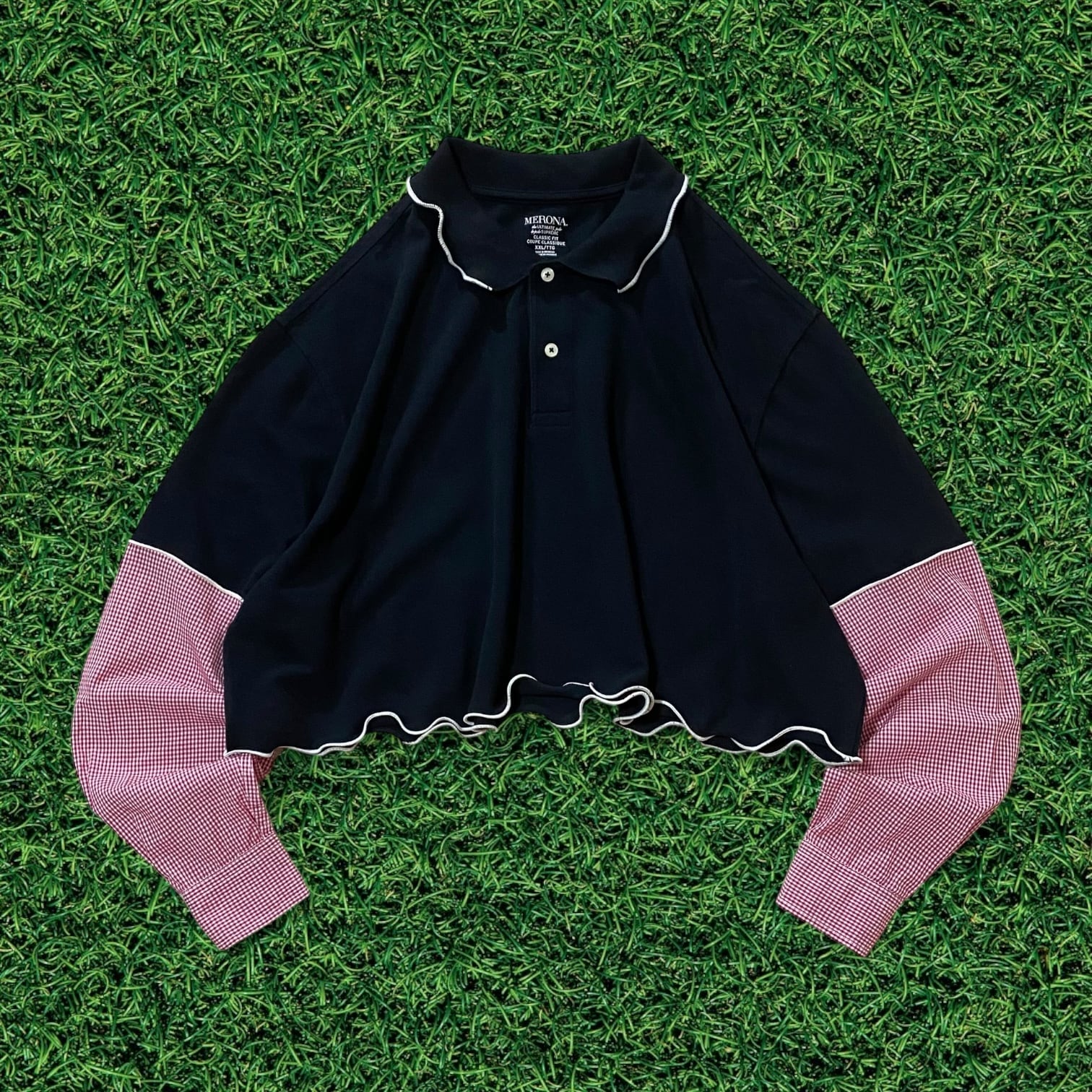 【リメイク古着】再構築USAポロシャツ×ギンガムチェクシャツ袖メローフリルレディース