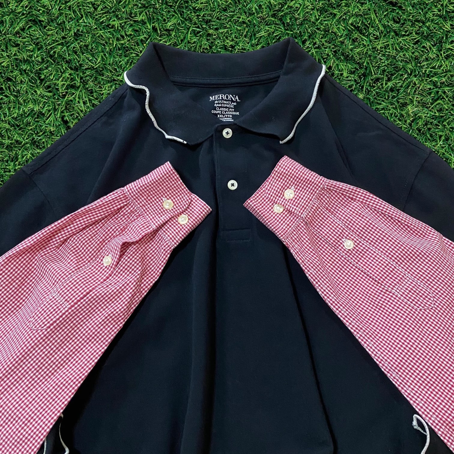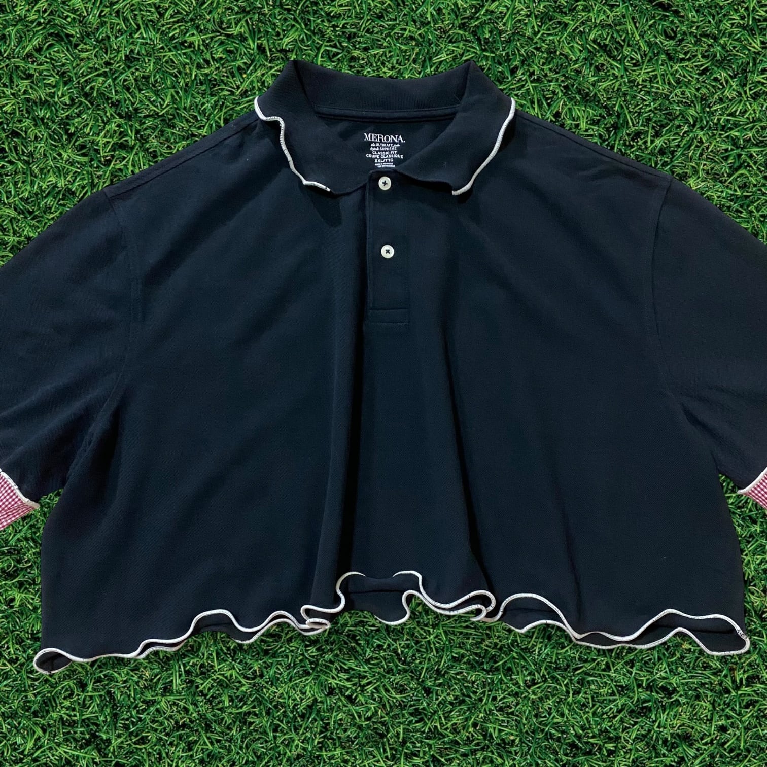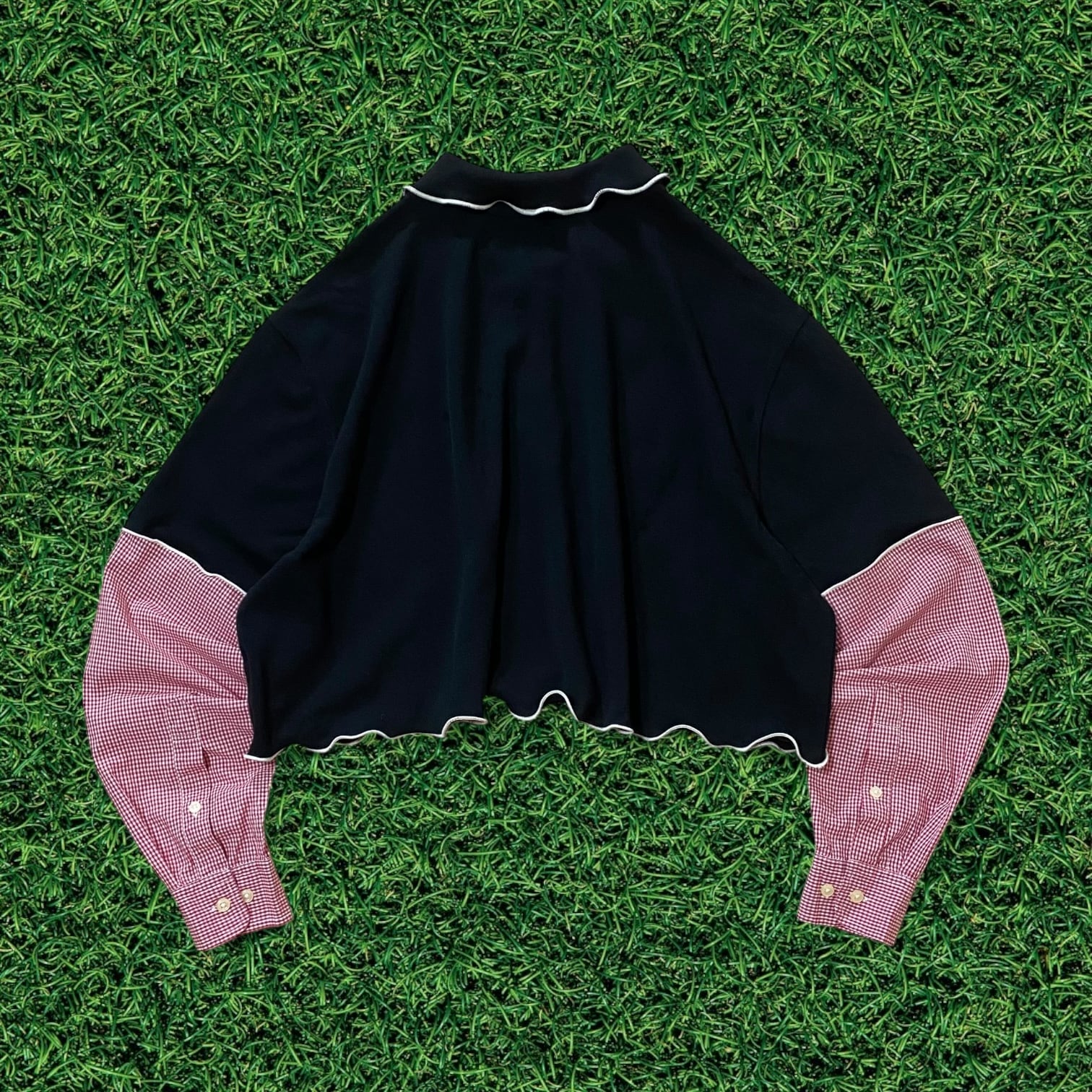 【リメイク古着】再構築USAポロシャツ×ギンガムチェクシャツ袖メローフリルレディース