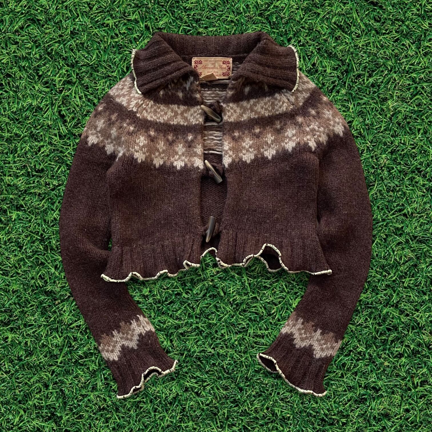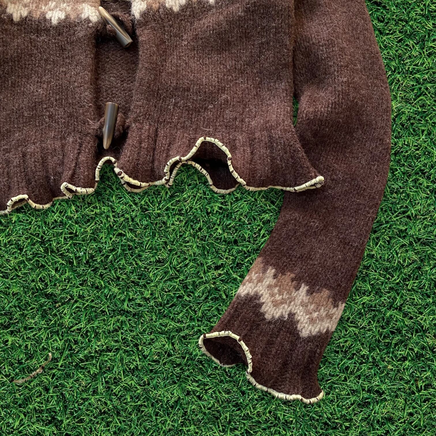 【リメイク古着】再構築メローフリル ボレロ ノルディック柄ニットカーディガン 短丈レディース