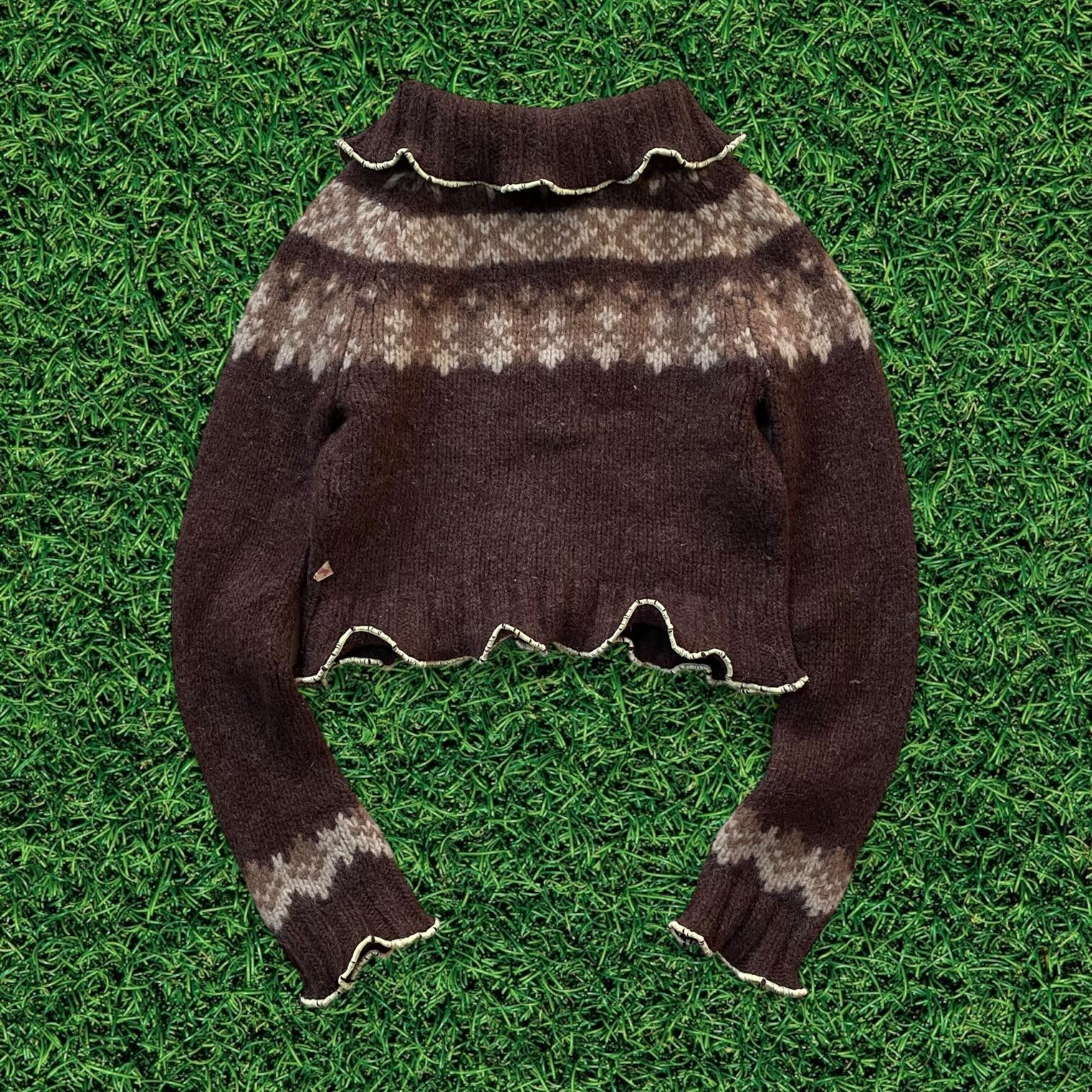 短丈で裾がメローフリルになっている、超絶可愛いニットセーター。