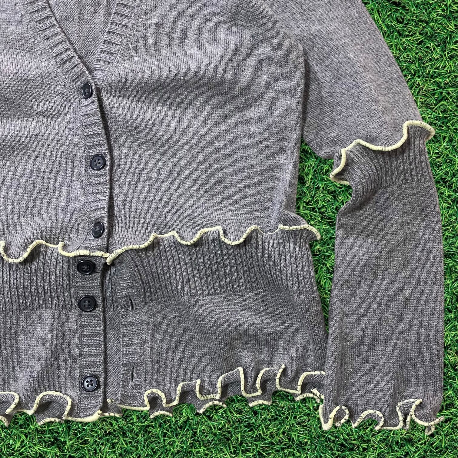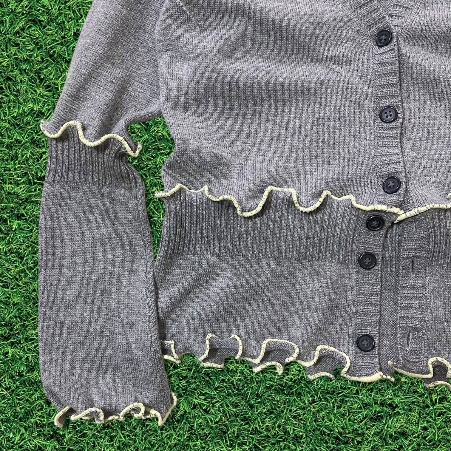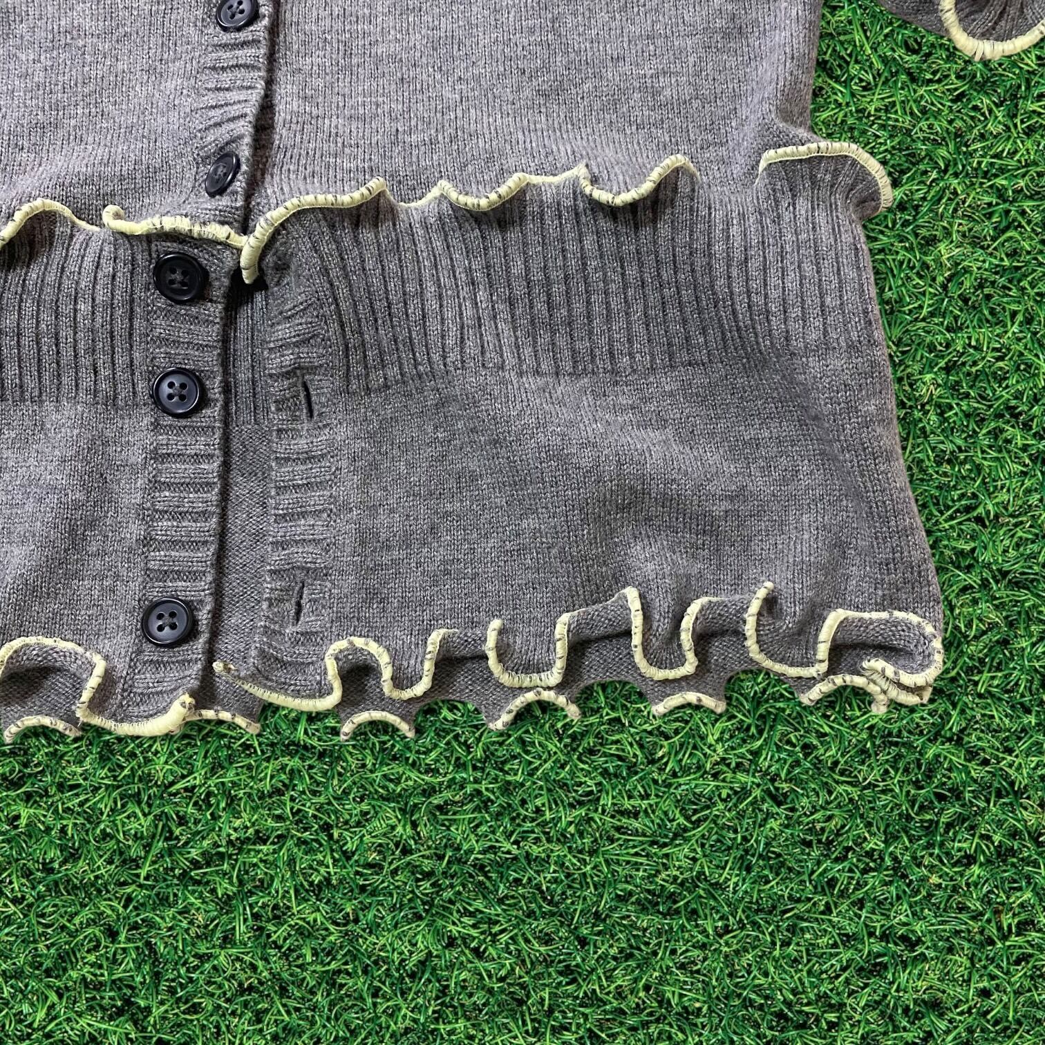【リメイク古着】再構築イエローメローフリル グレーニットカーディガンレディース