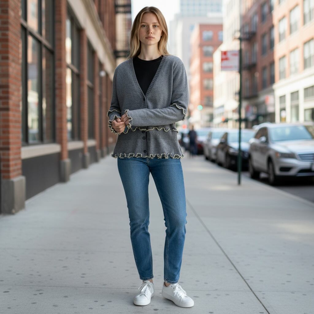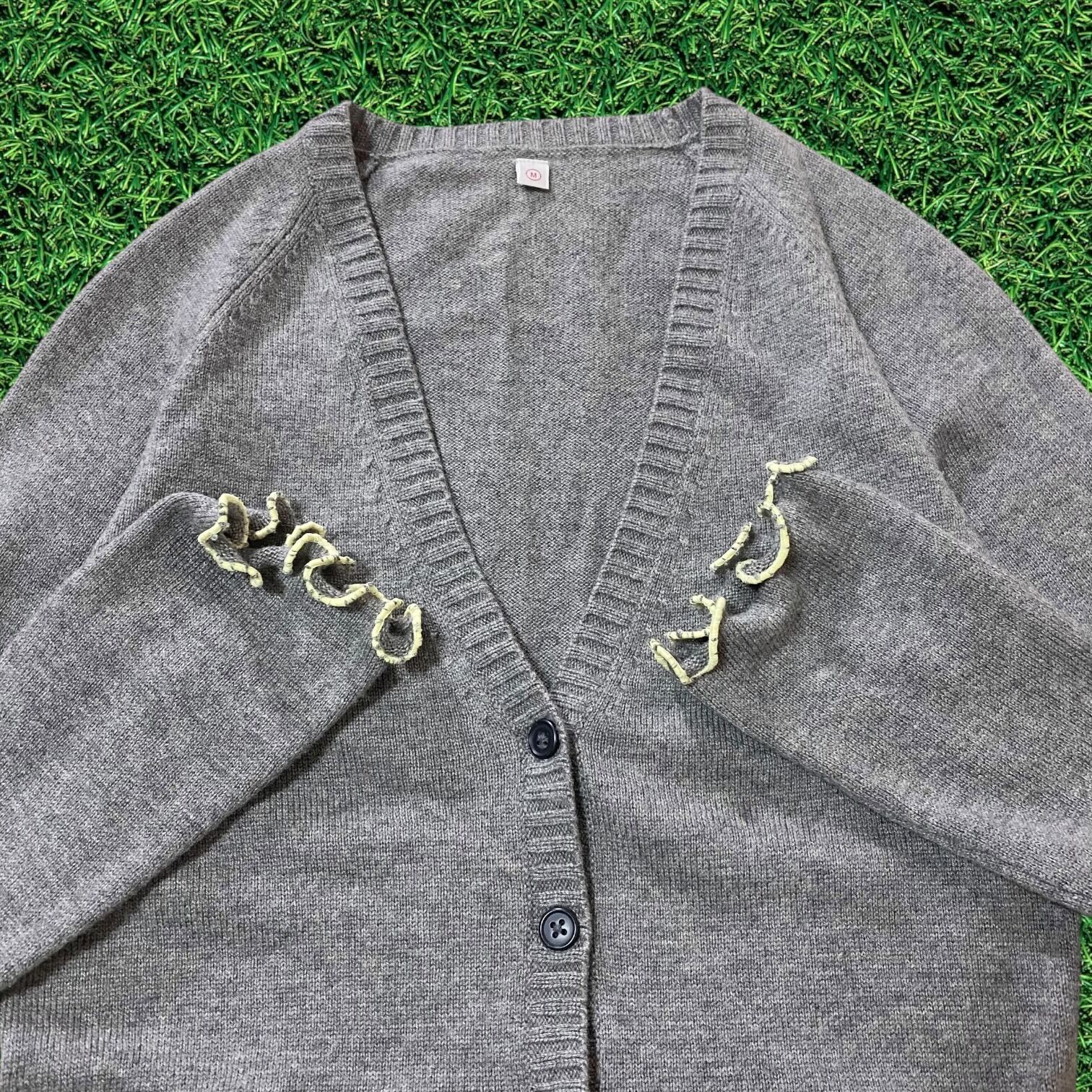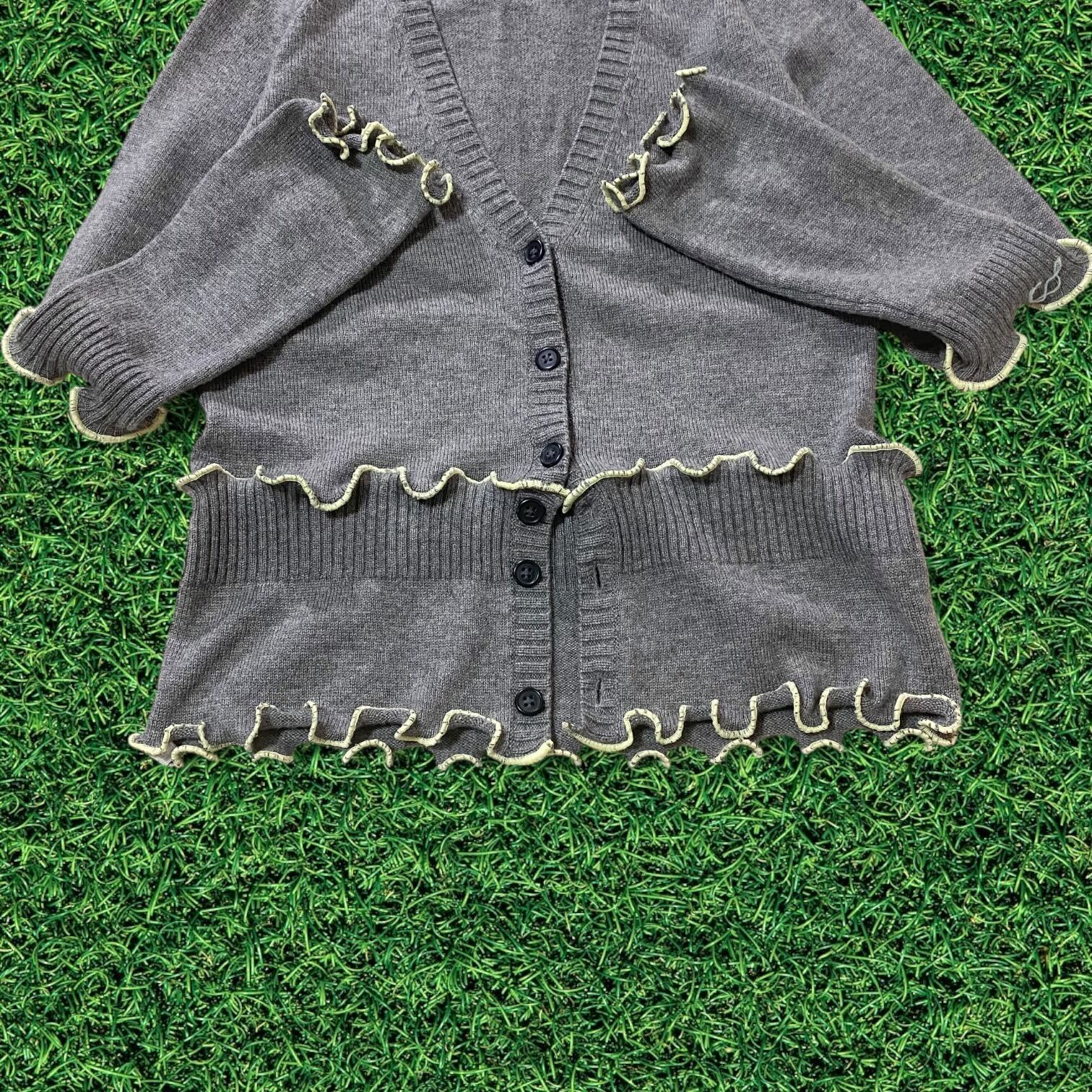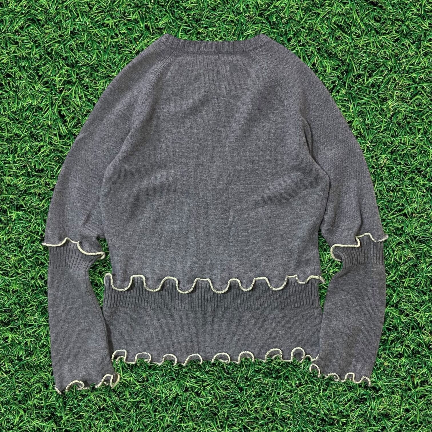 【リメイク古着】再構築イエローメローフリル グレーニットカーディガンレディース