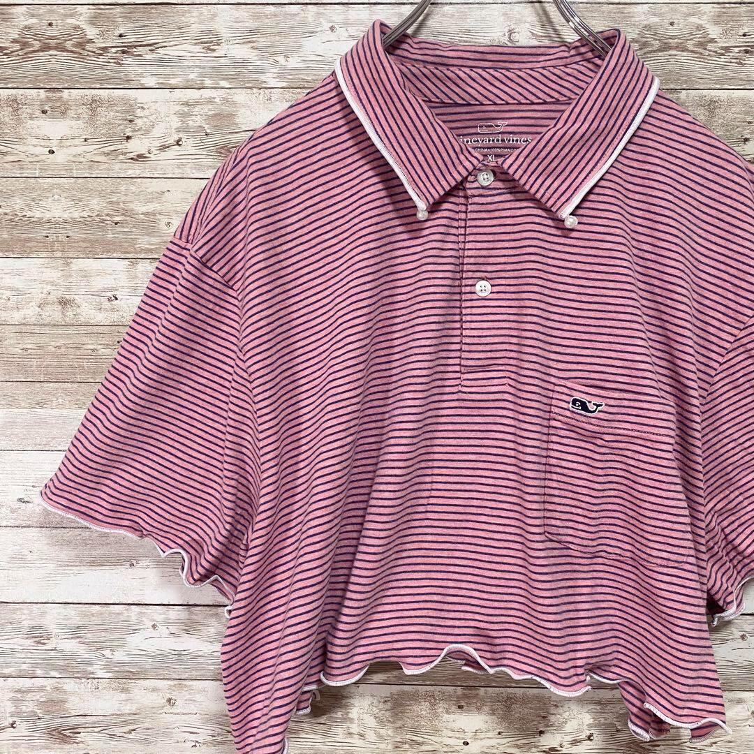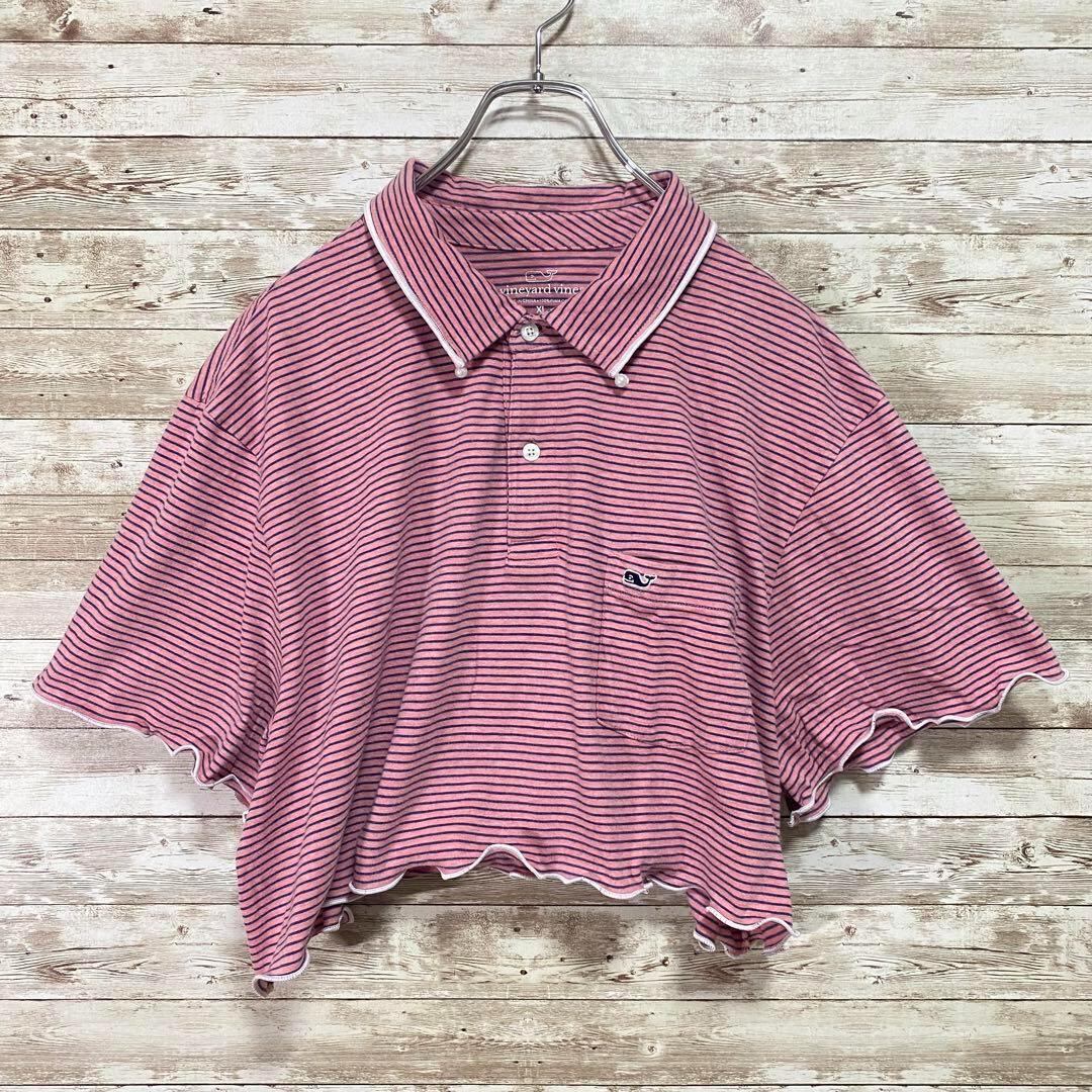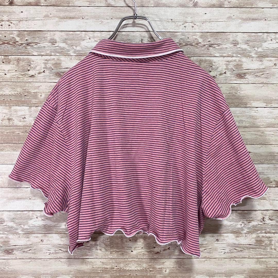 【リメイク古着】ポロシャツ 半袖 ハンドメイド メロウ フリル ボーダー再構築