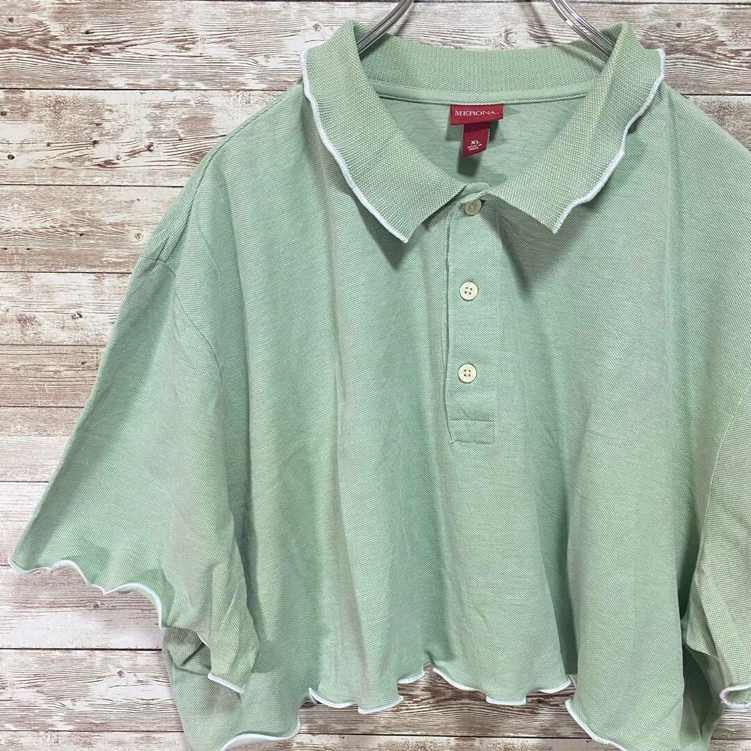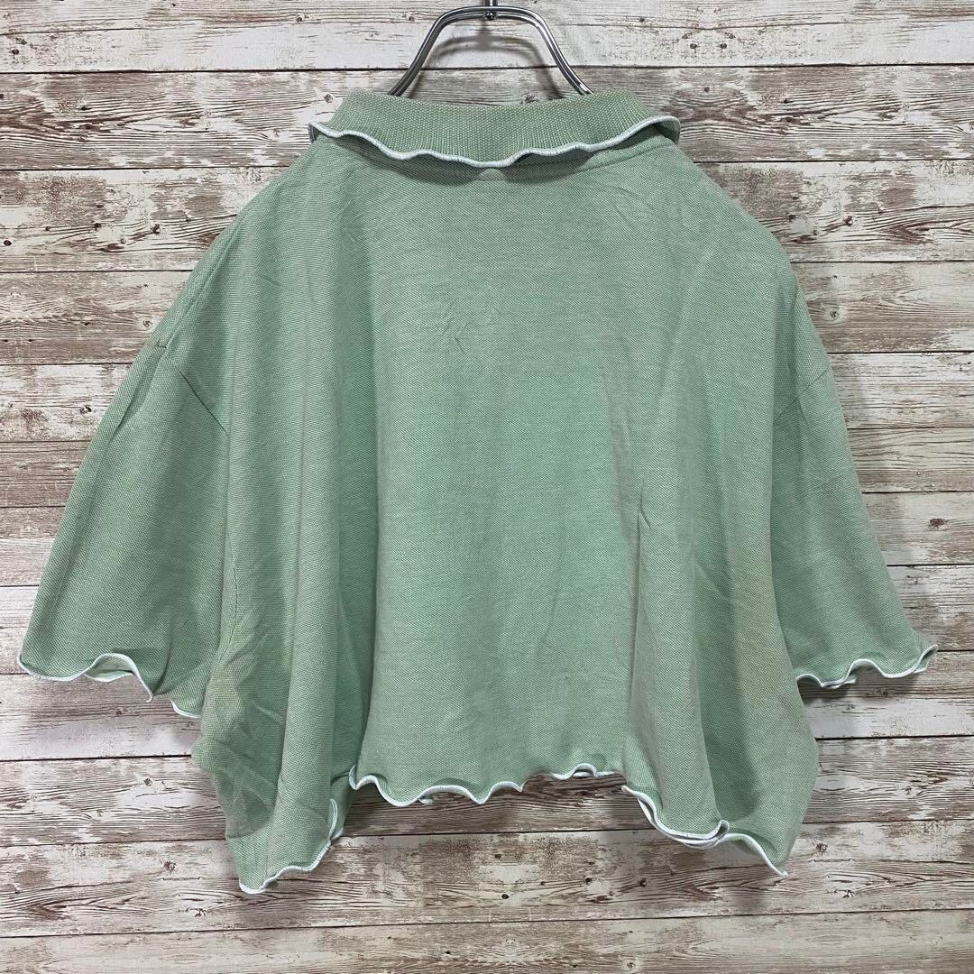 【リメイク古着】再構築ポロシャツ半袖 ハンドメイド メロウフリル ミントグリーン