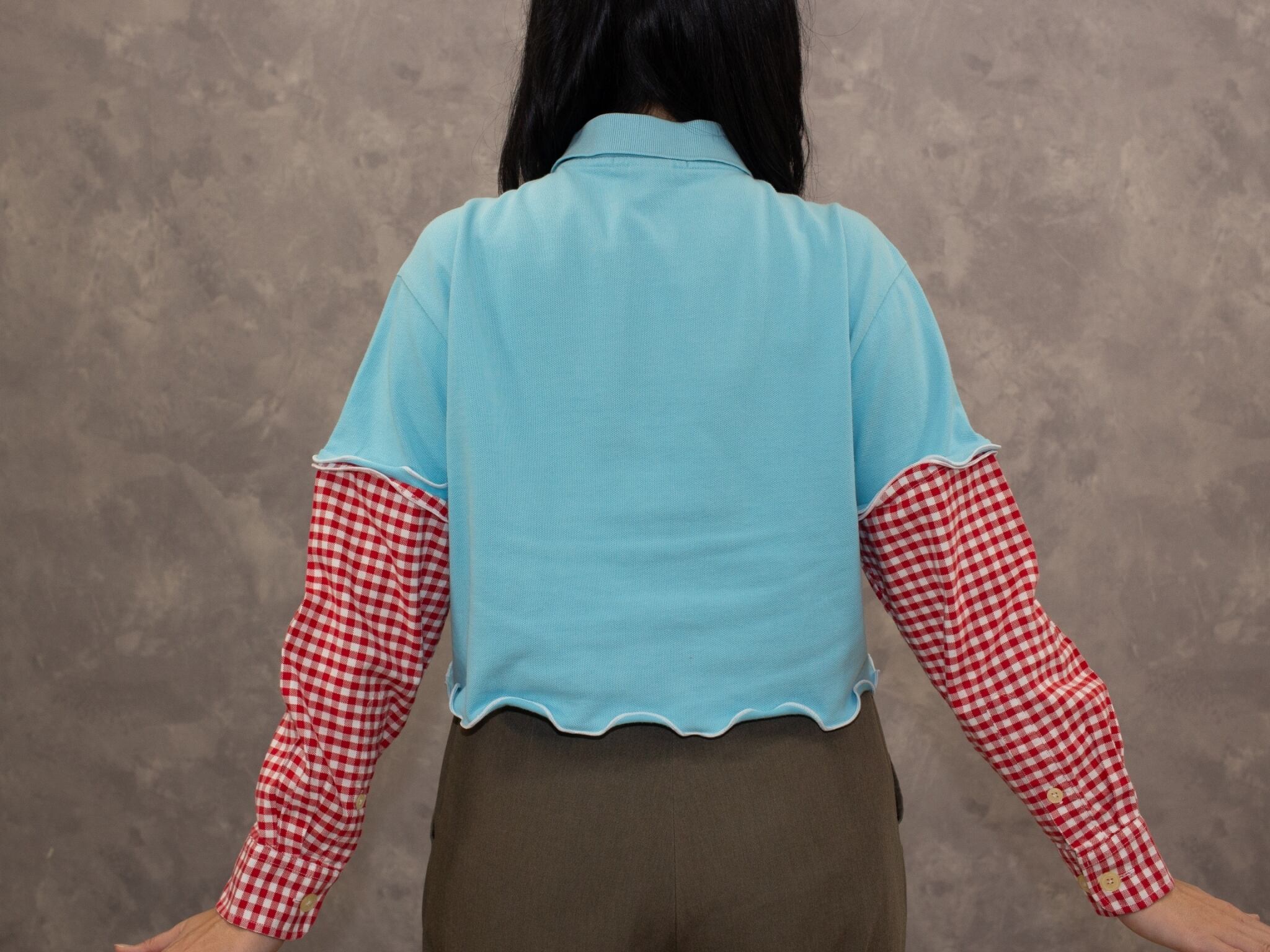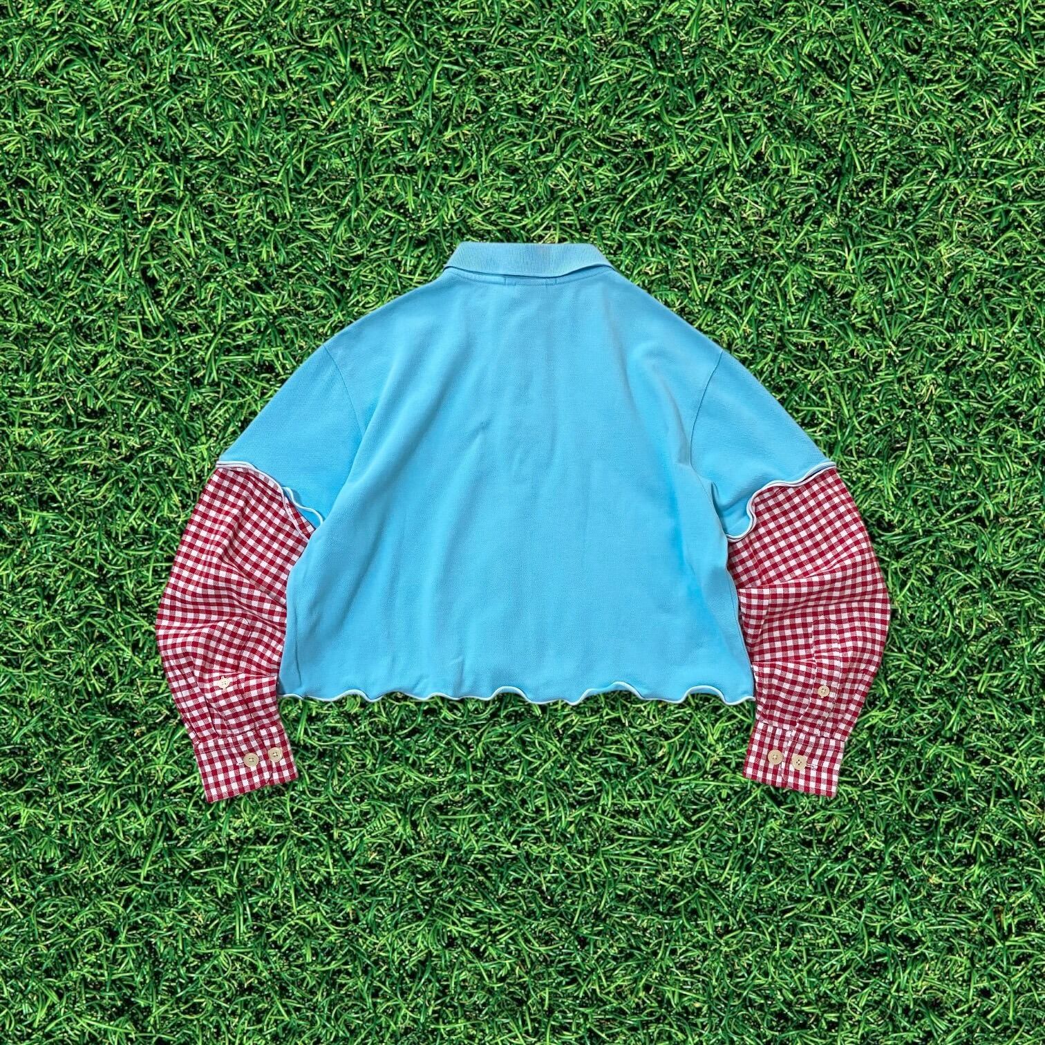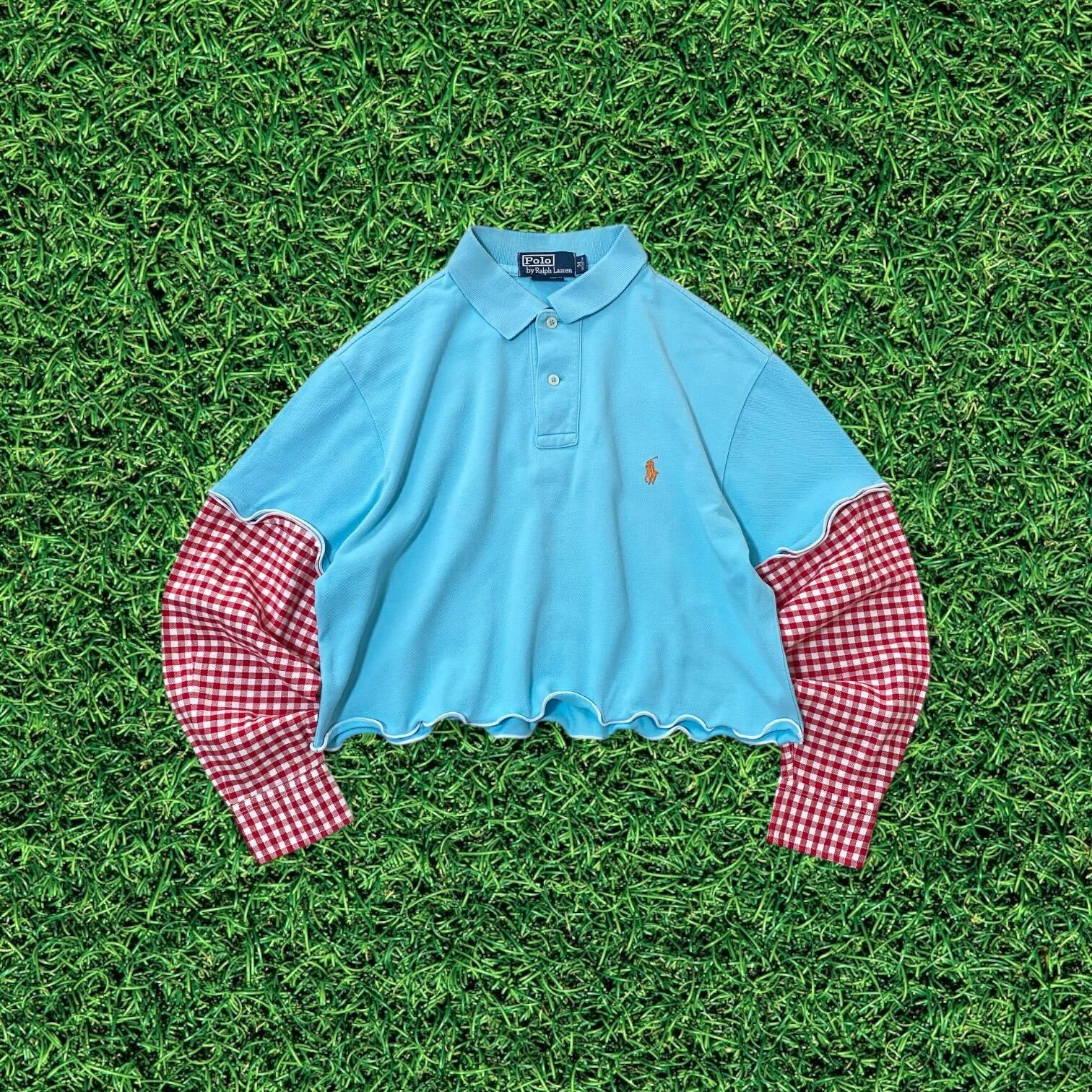 【リメイク古着】ポロシャツ×シャツ袖 メロウフリル ラルフブルー