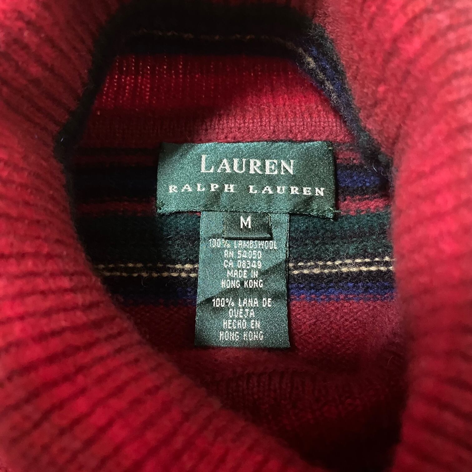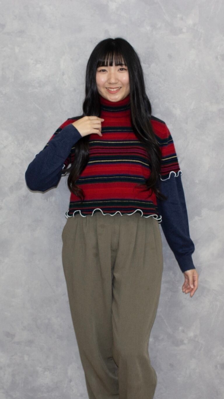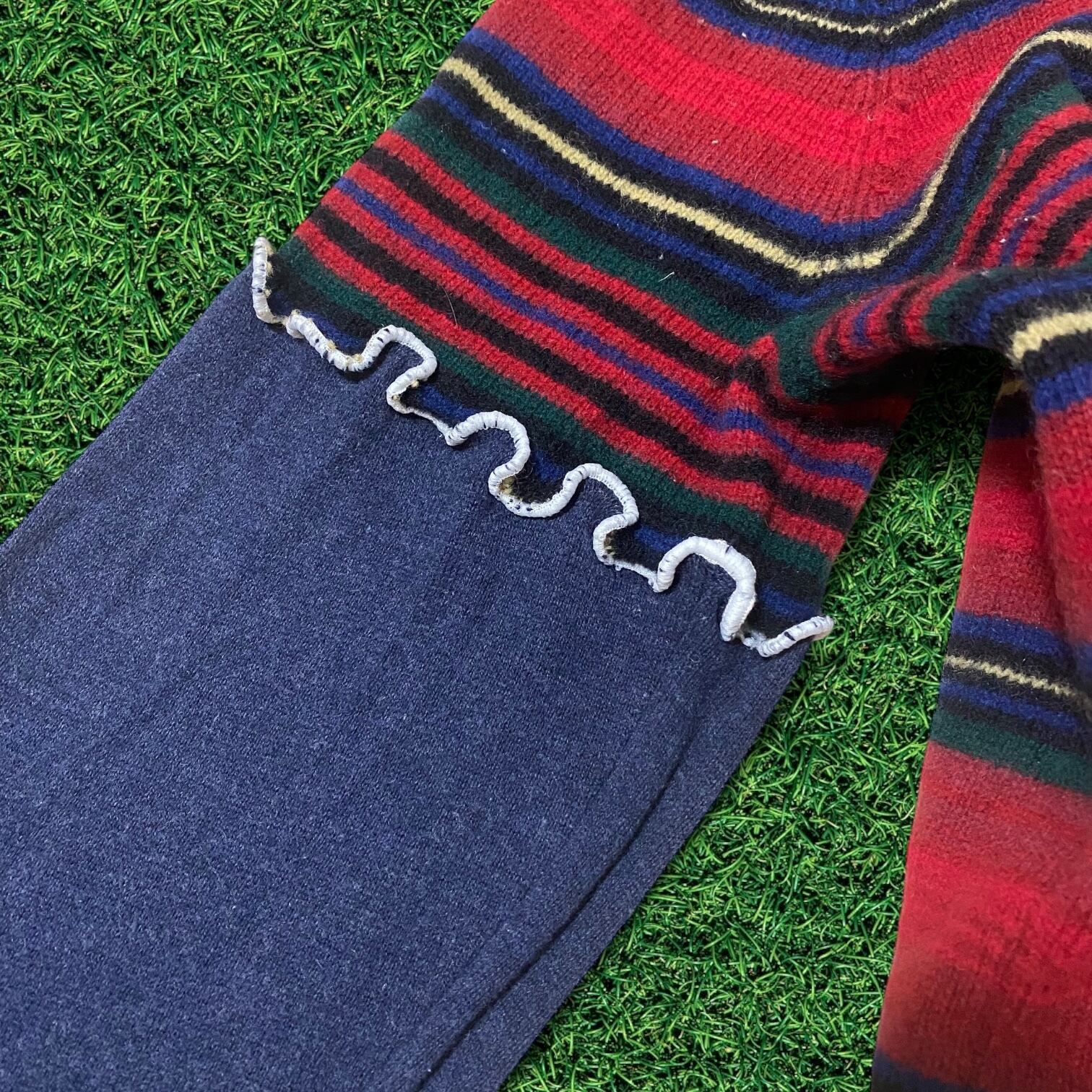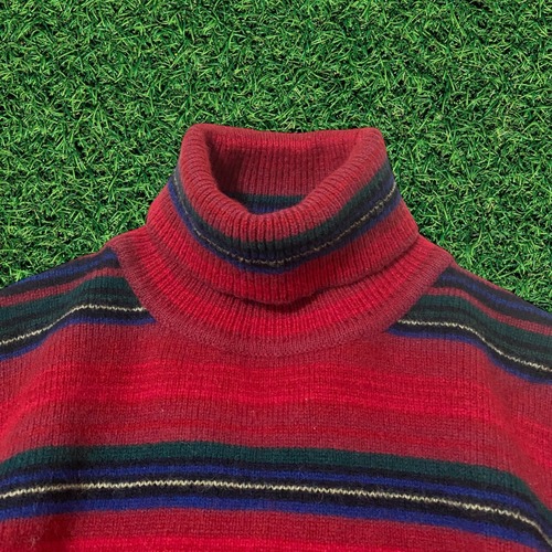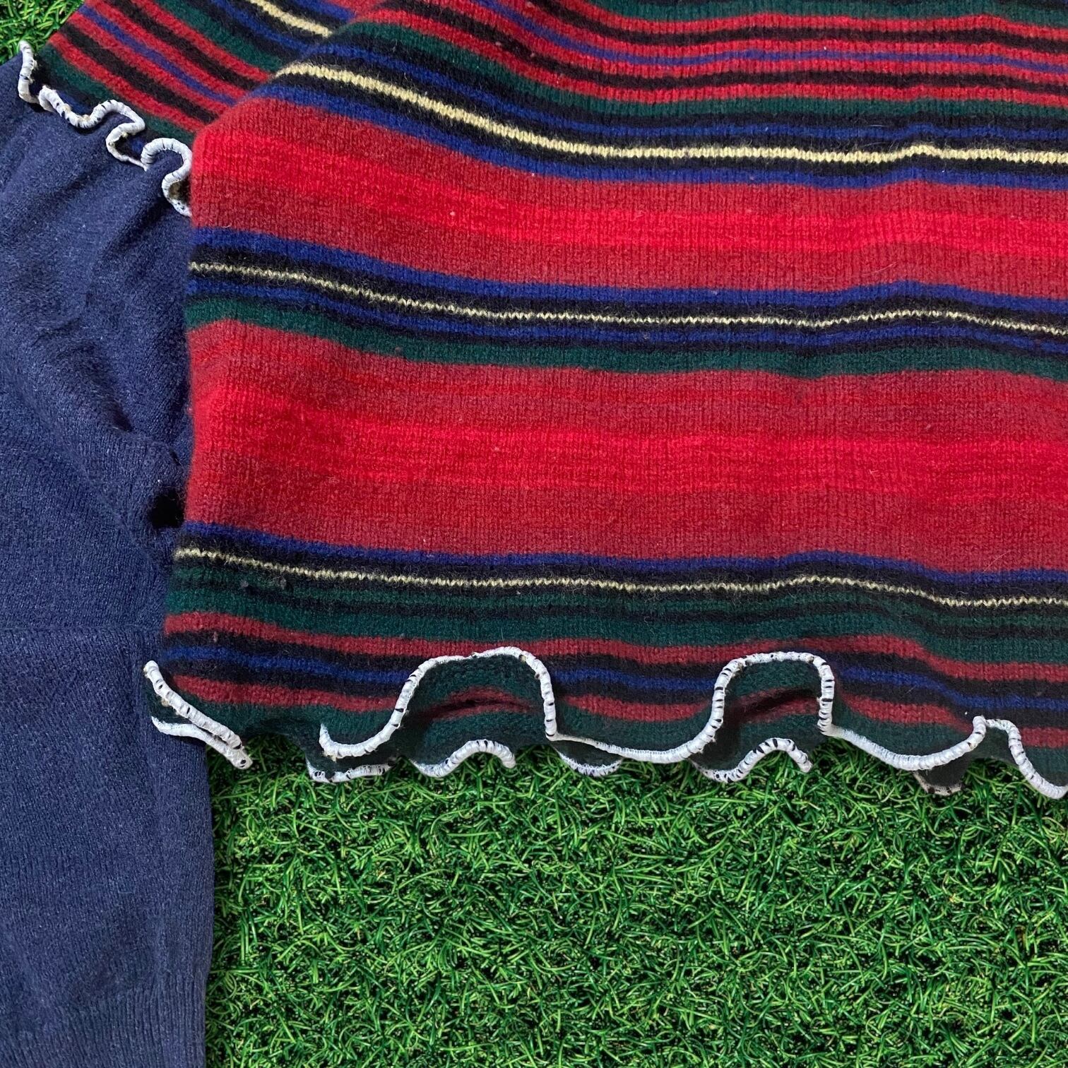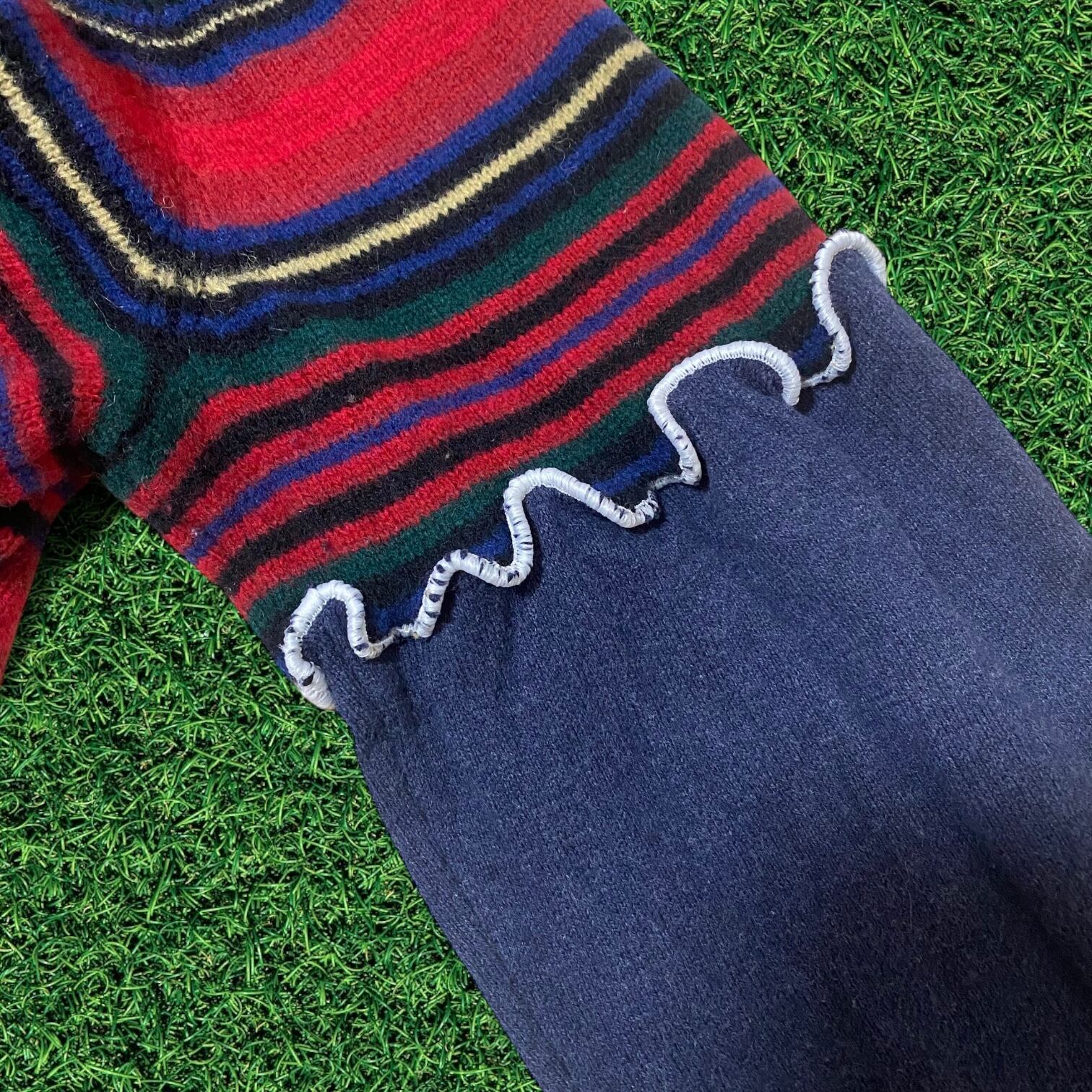 【リメイク古着】再構築タートルネックチビ丈レッドボーダーニット×ネイビーニット レディース