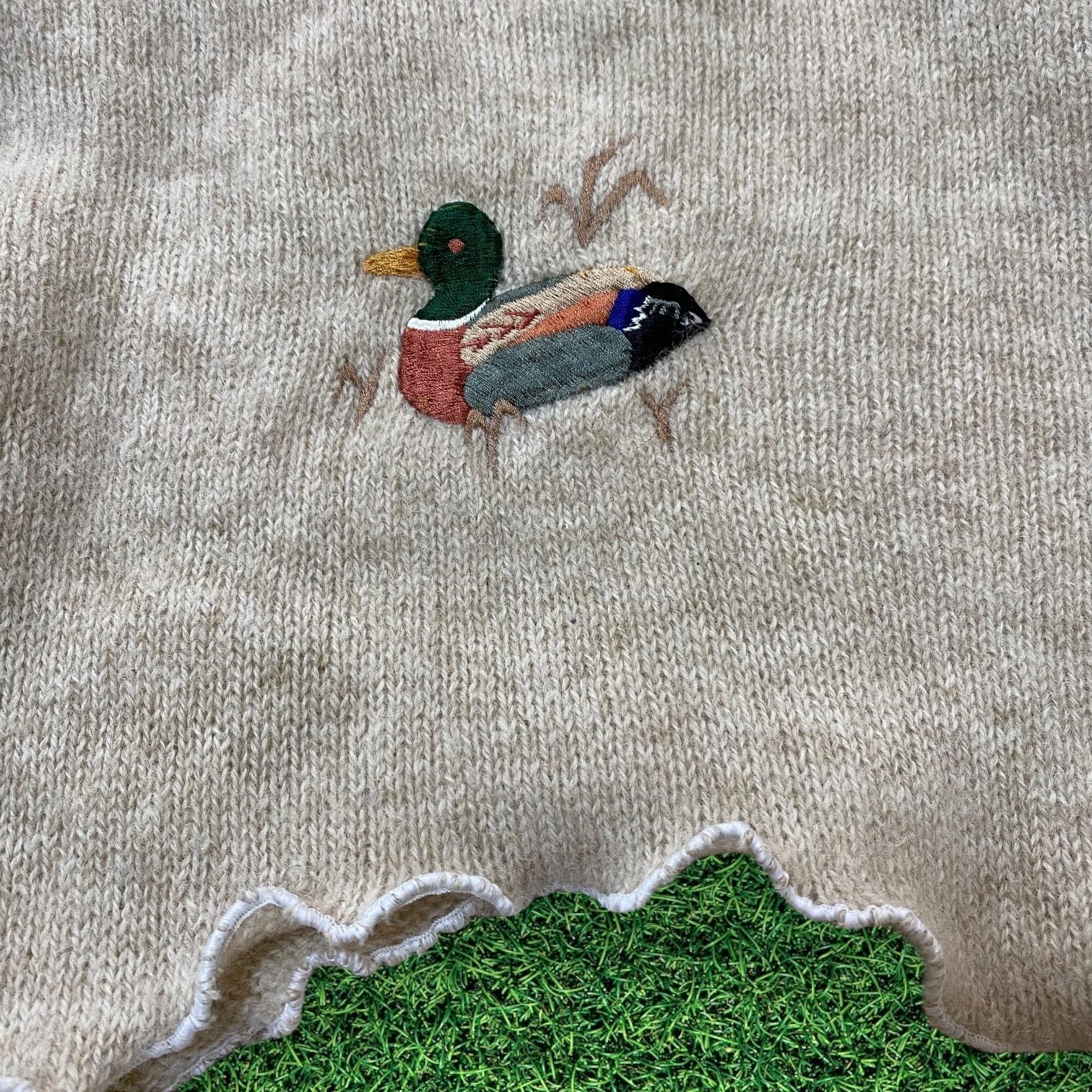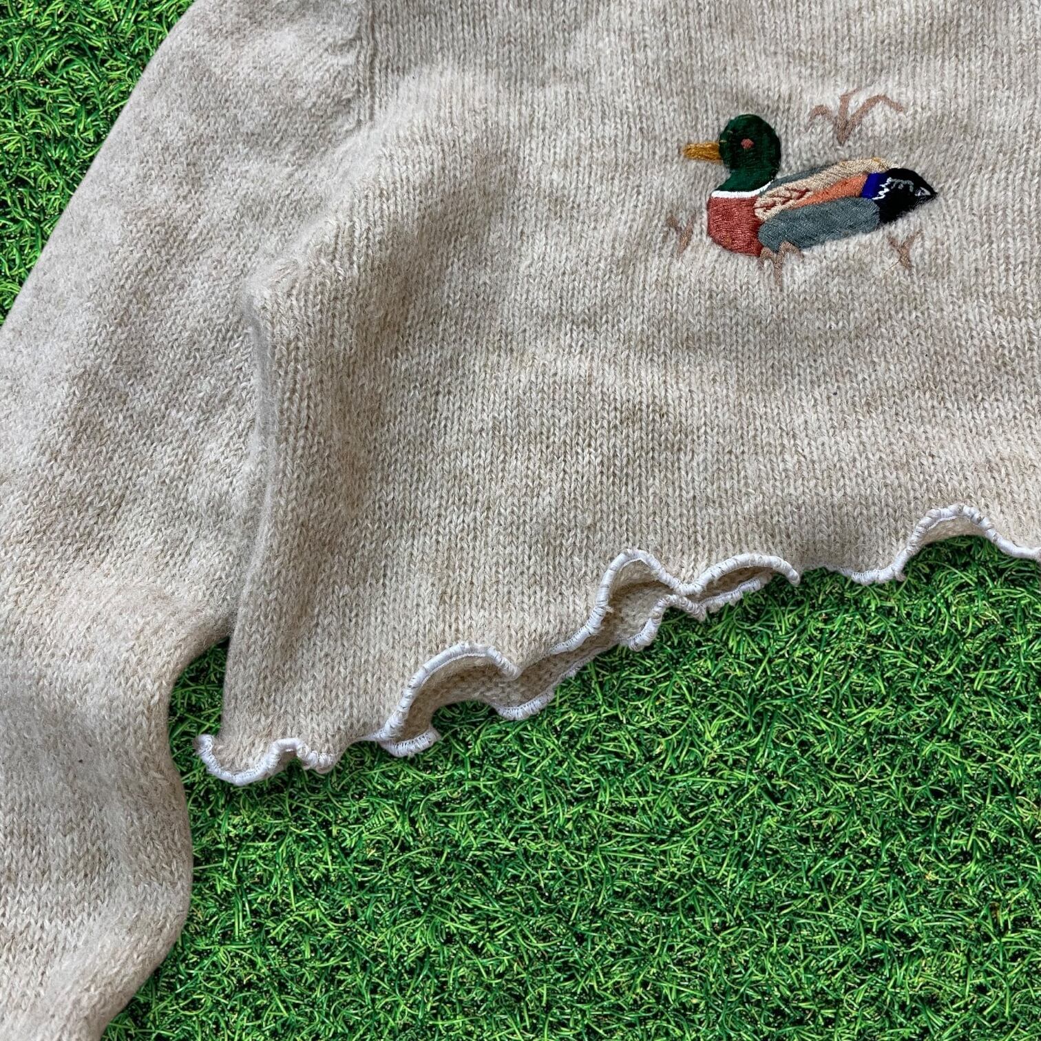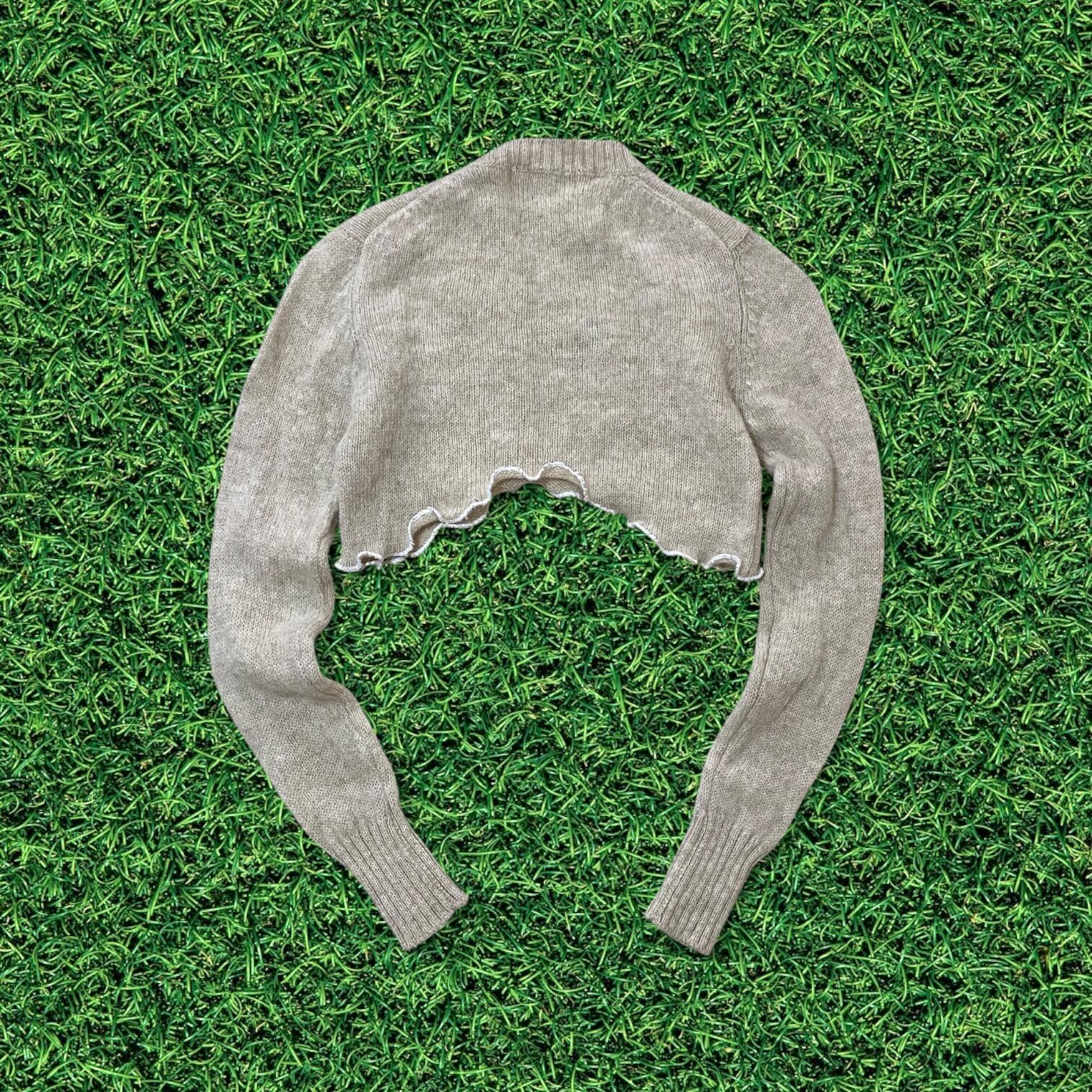 【リメイク古着】再構築チビ丈メローフリルカモ刺繍ニット