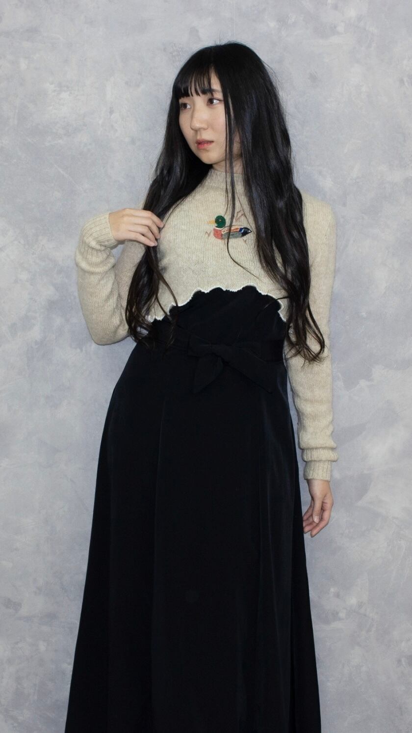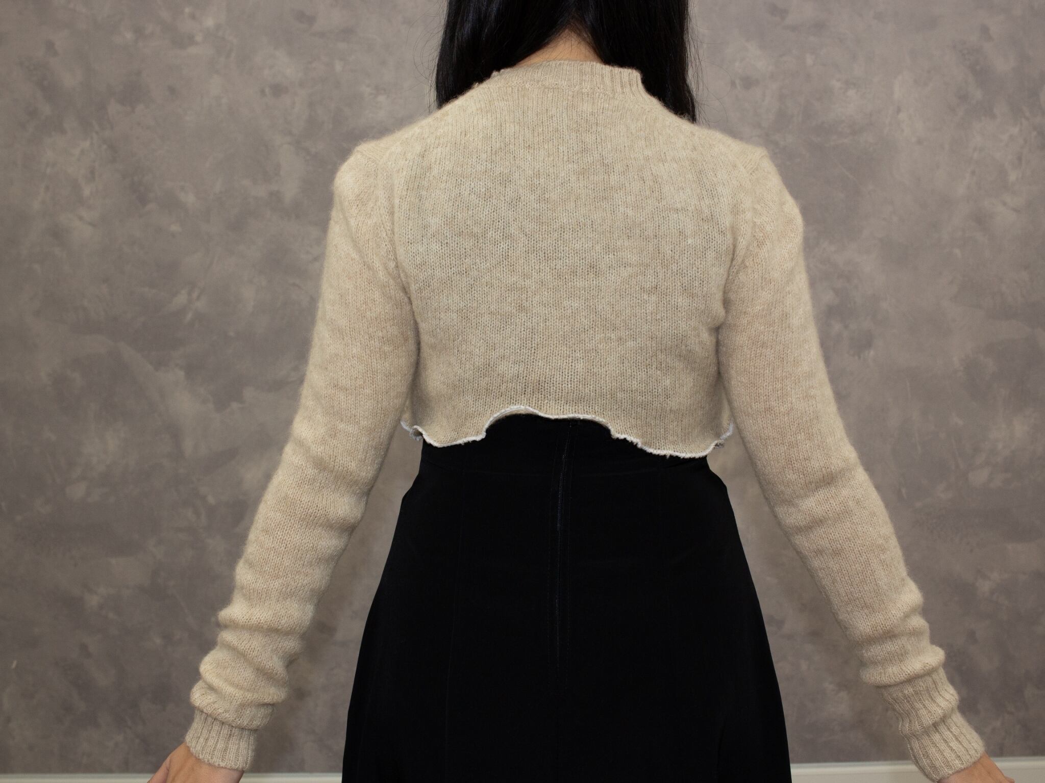 身幅が細く着にくかったアイテムの裾を短くして、重ね着してかわいいアイテムに生まれ変わりました。