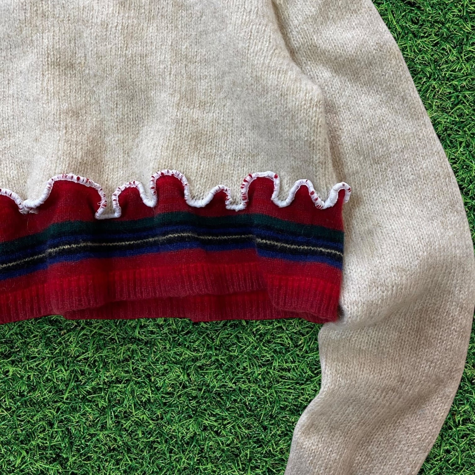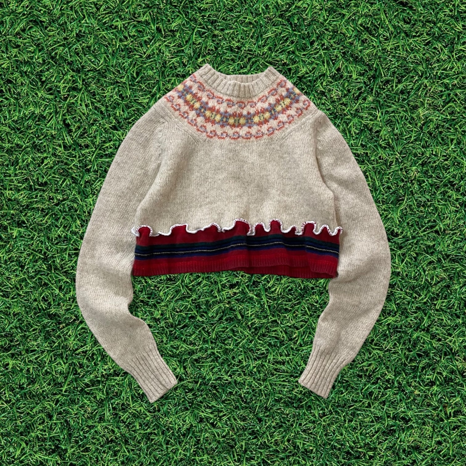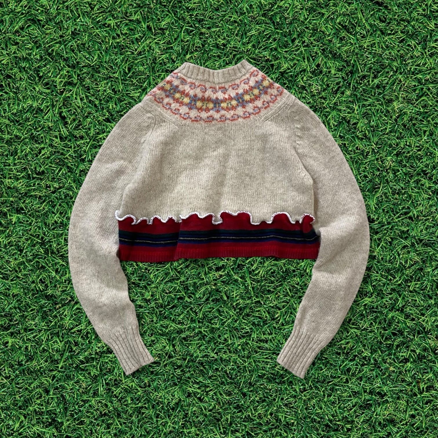 【リメイク古着】再構築メローフリルチビ丈ノルディックニット×ボーダーニット