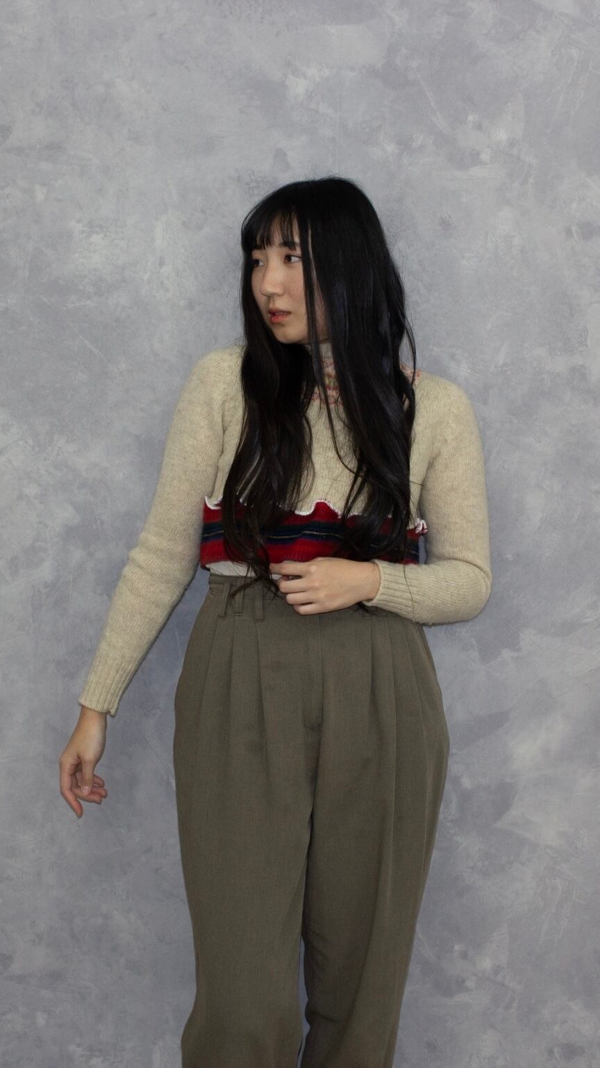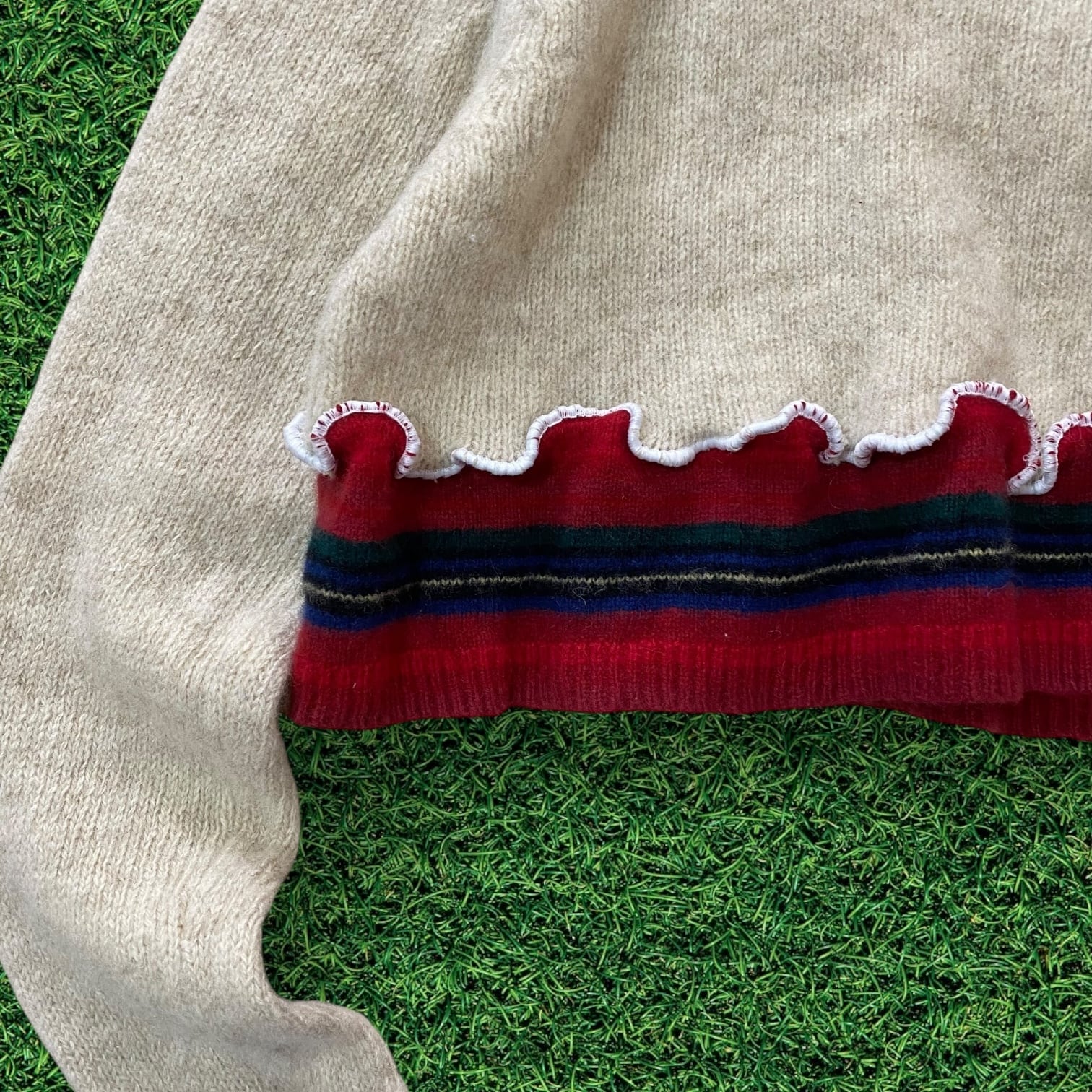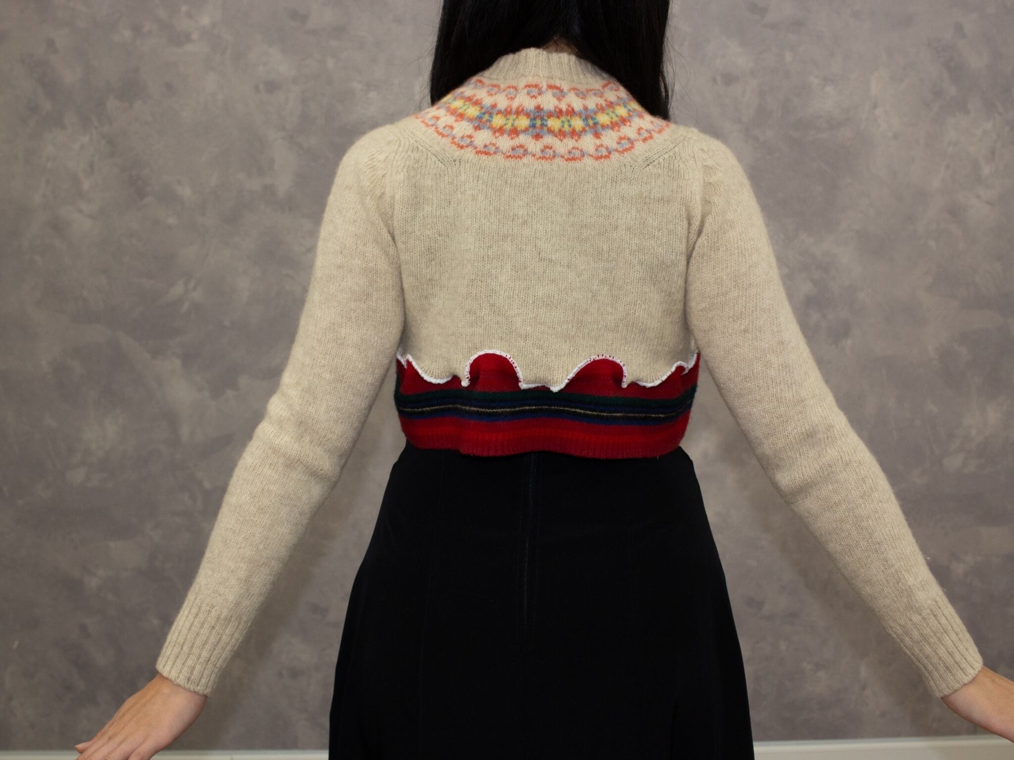 【リメイク古着】再構築メローフリルチビ丈ノルディックニット×ボーダーニット