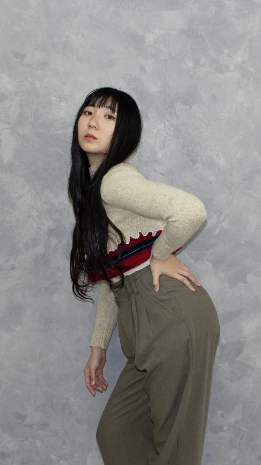 ぴったりフィットなのでボリュームがあるボトムにもあるにも相性抜群。