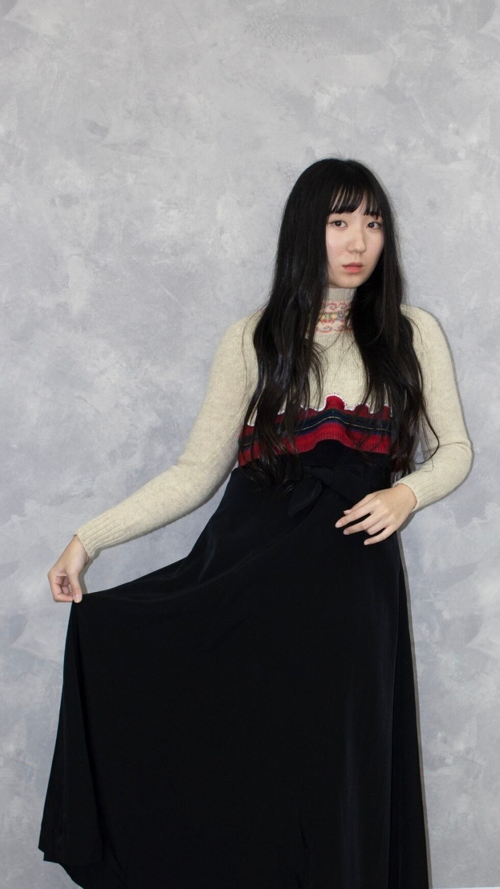 裾に穴が開いている部分を切り取って、また新しく生まれ変わった一点物。