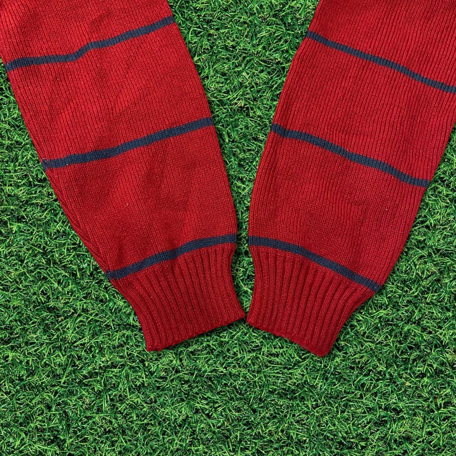 この季節らしい赤色ニットセーター。