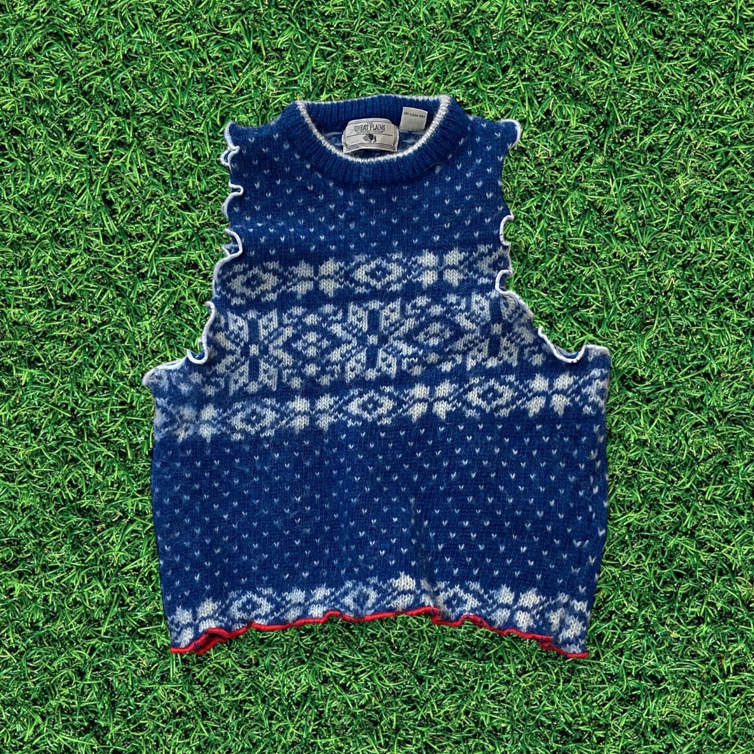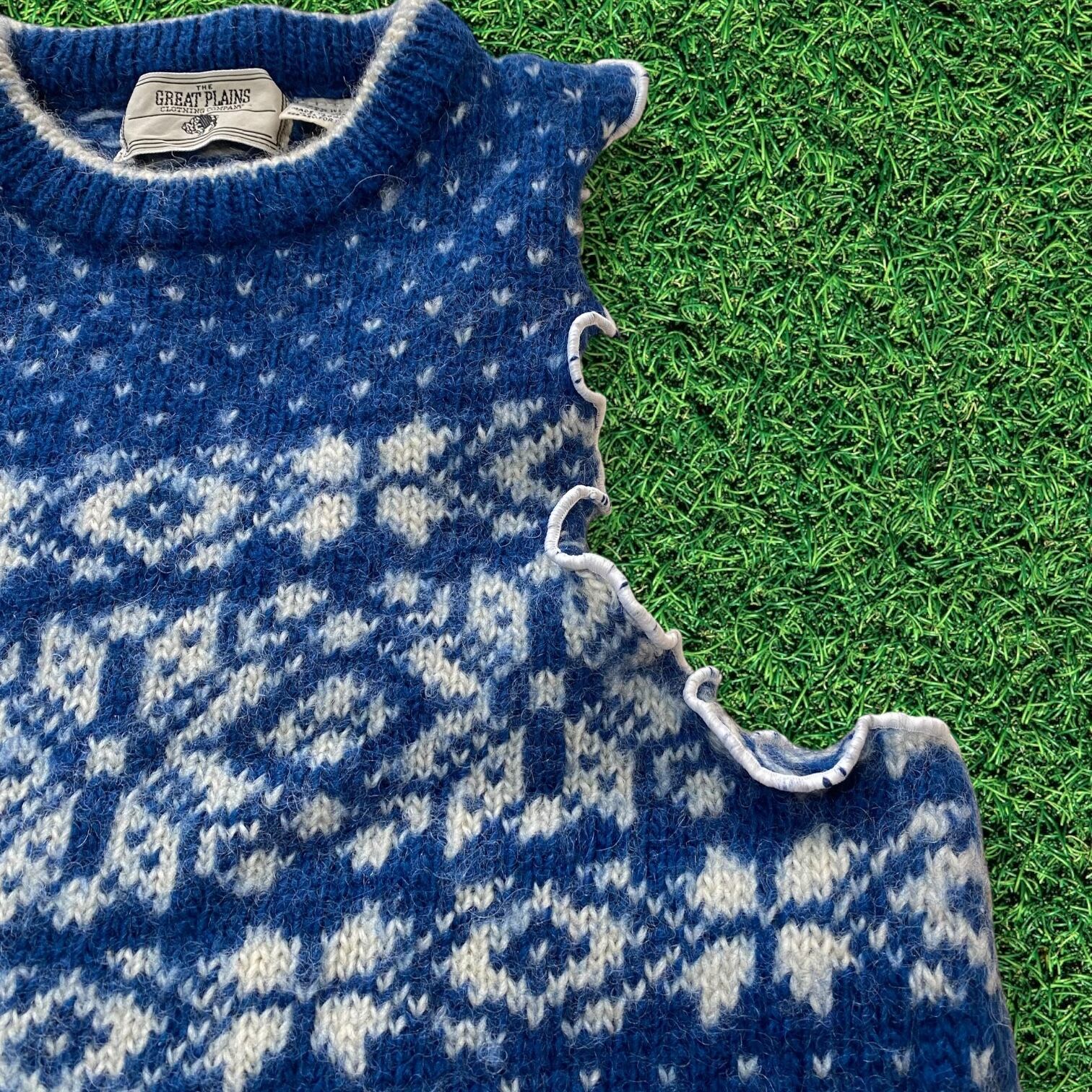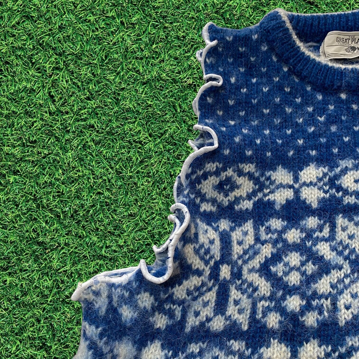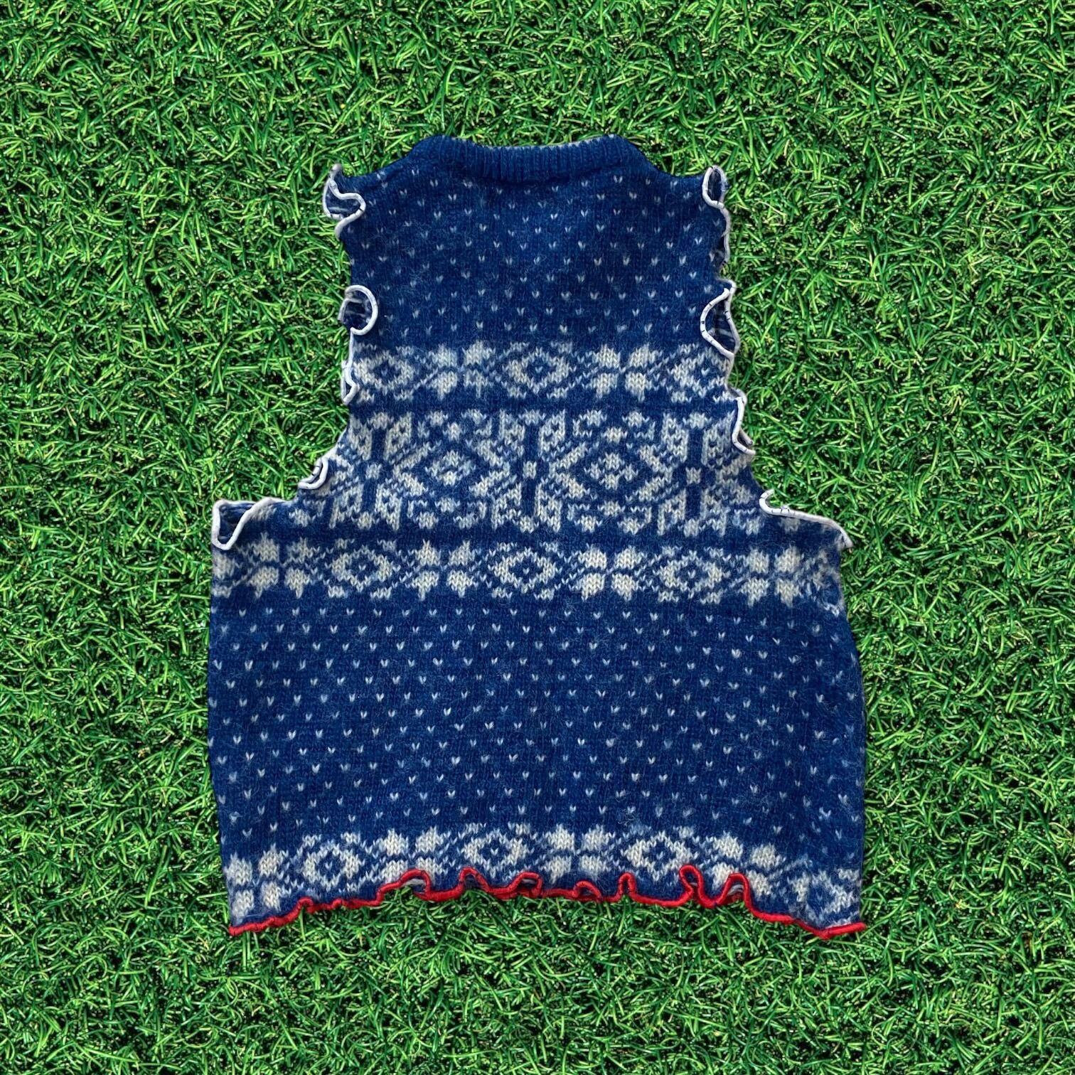 【リメイク古着】ベストニットセーター ノルディック柄メローフリルレディース